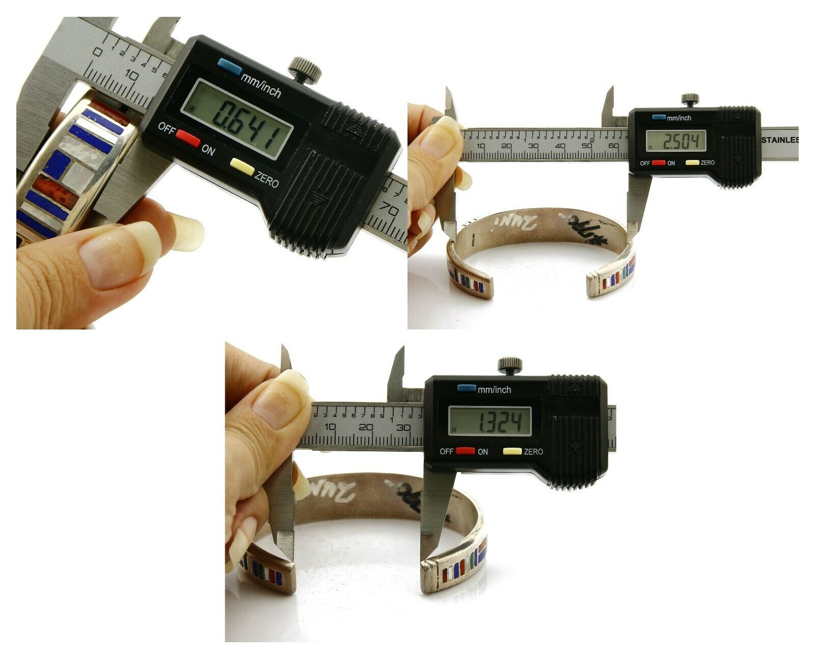 Artist David Freeland Inlaid Natural Gemstone .925 SOLID Silver Cuff Bracelet