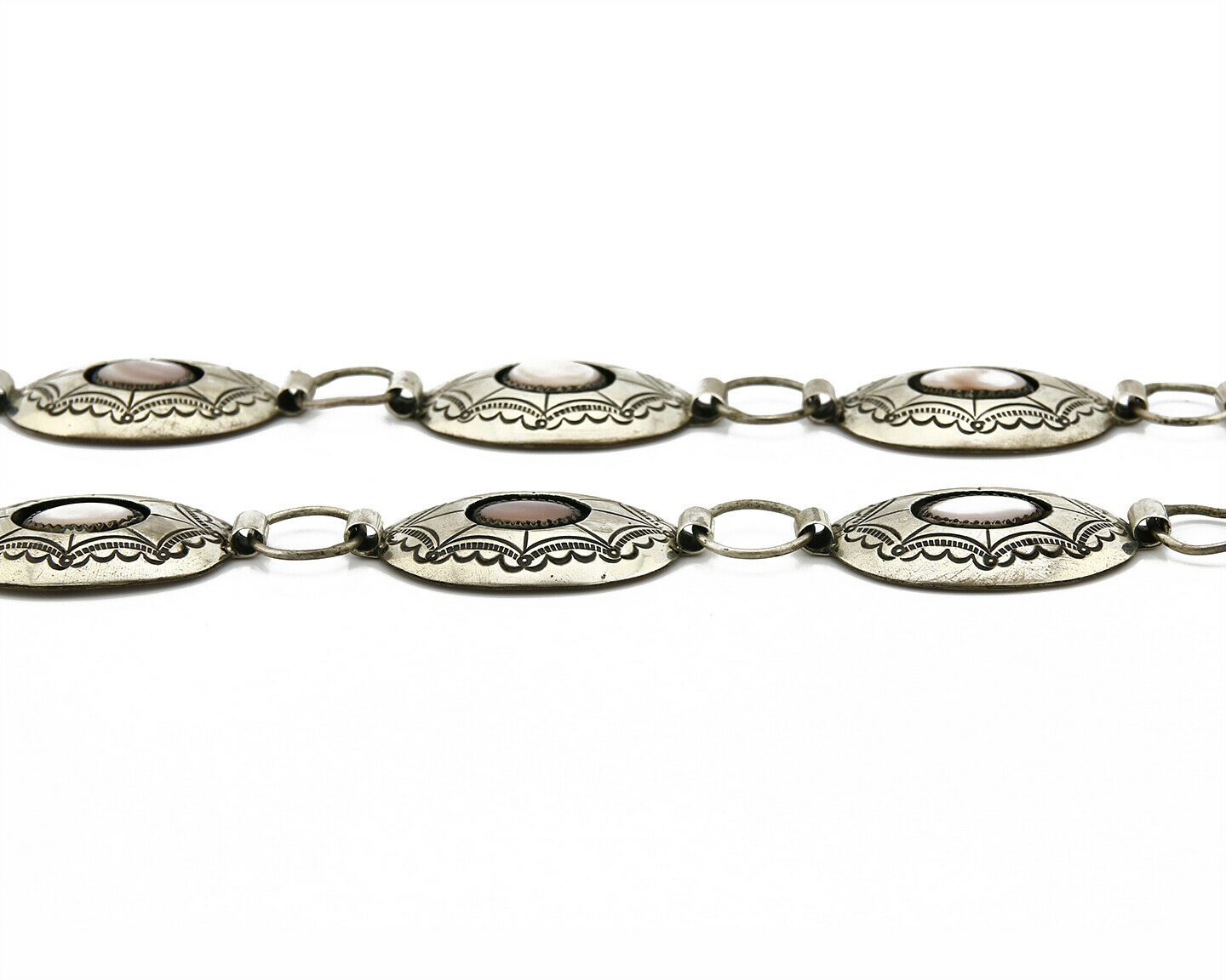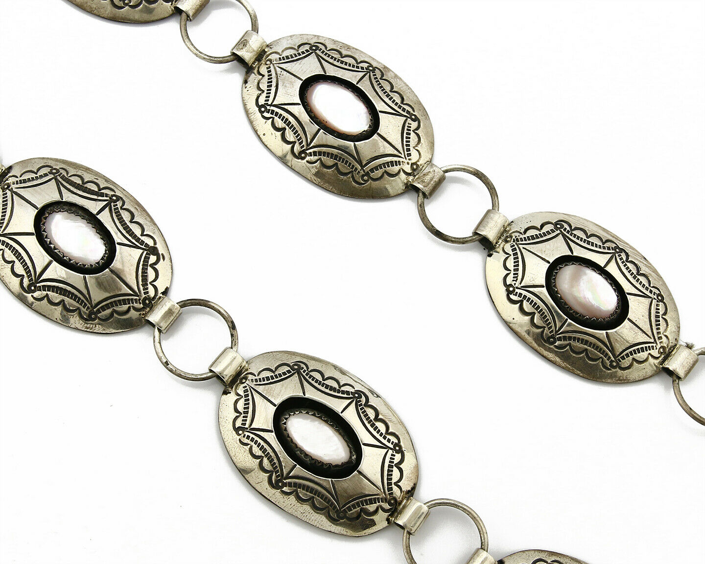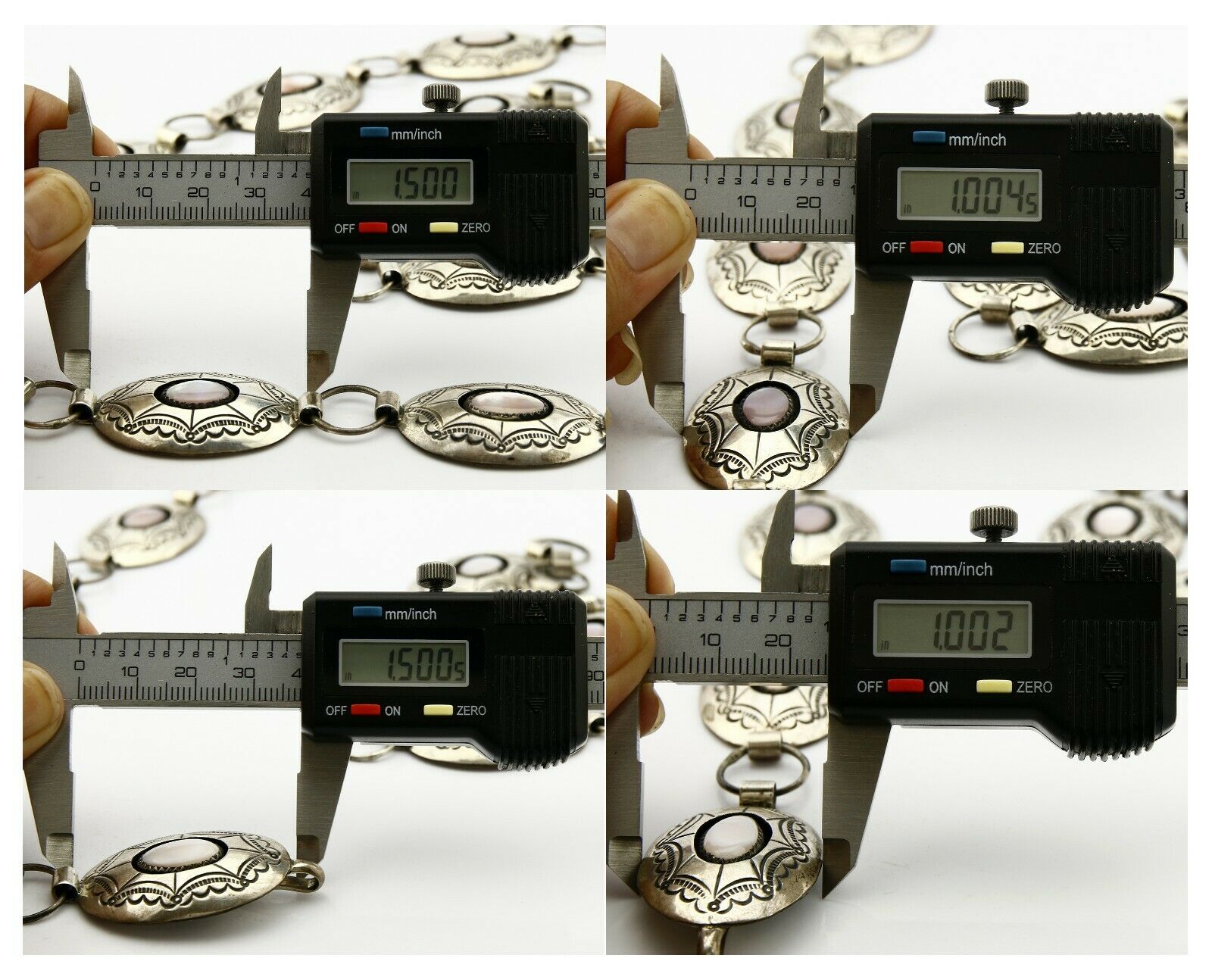 C.1985 Navajo Signed IHMJ Natural Pink Mussel Shadow Box .925 Silver Concho Belt