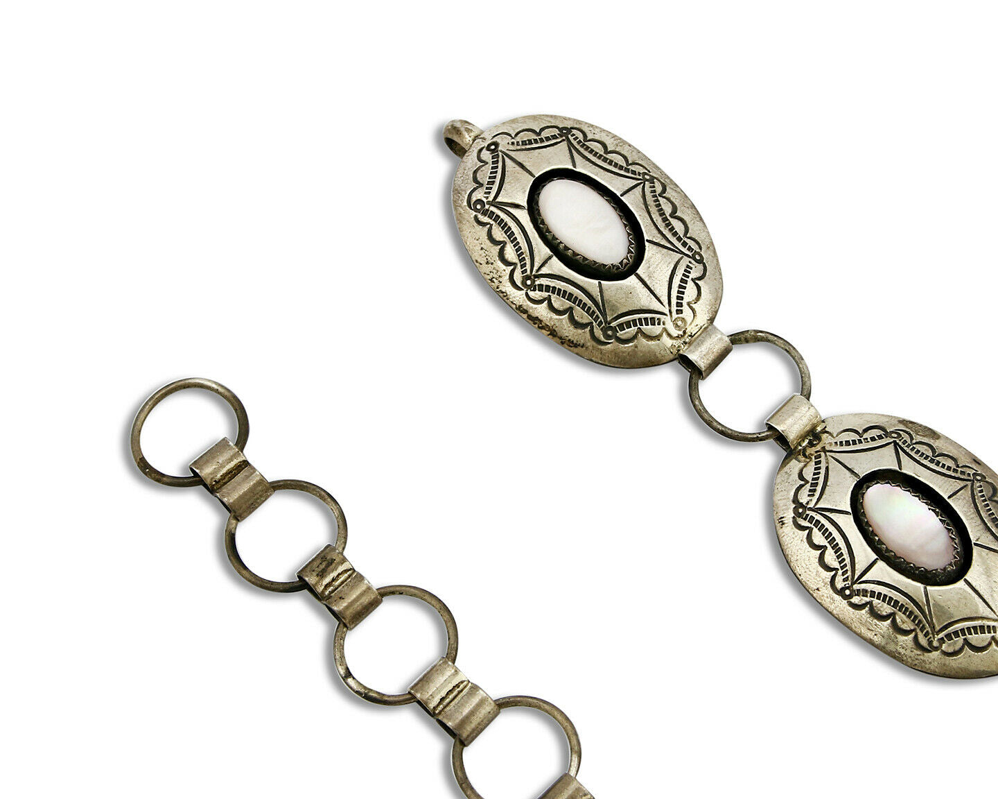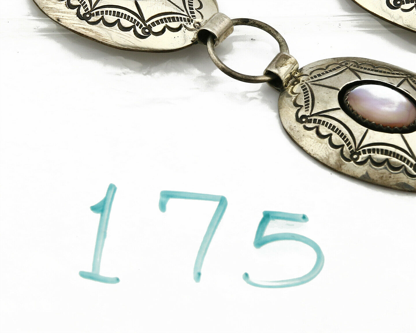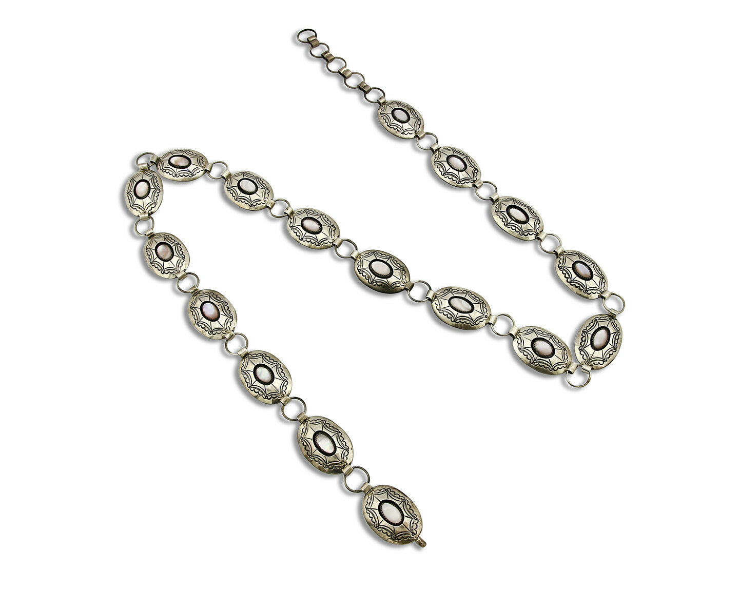 C.1985 Navajo Signed IHMJ Natural Pink Mussel Shadow Box .925 Silver Concho Belt
