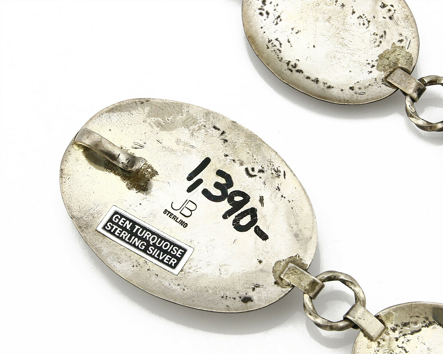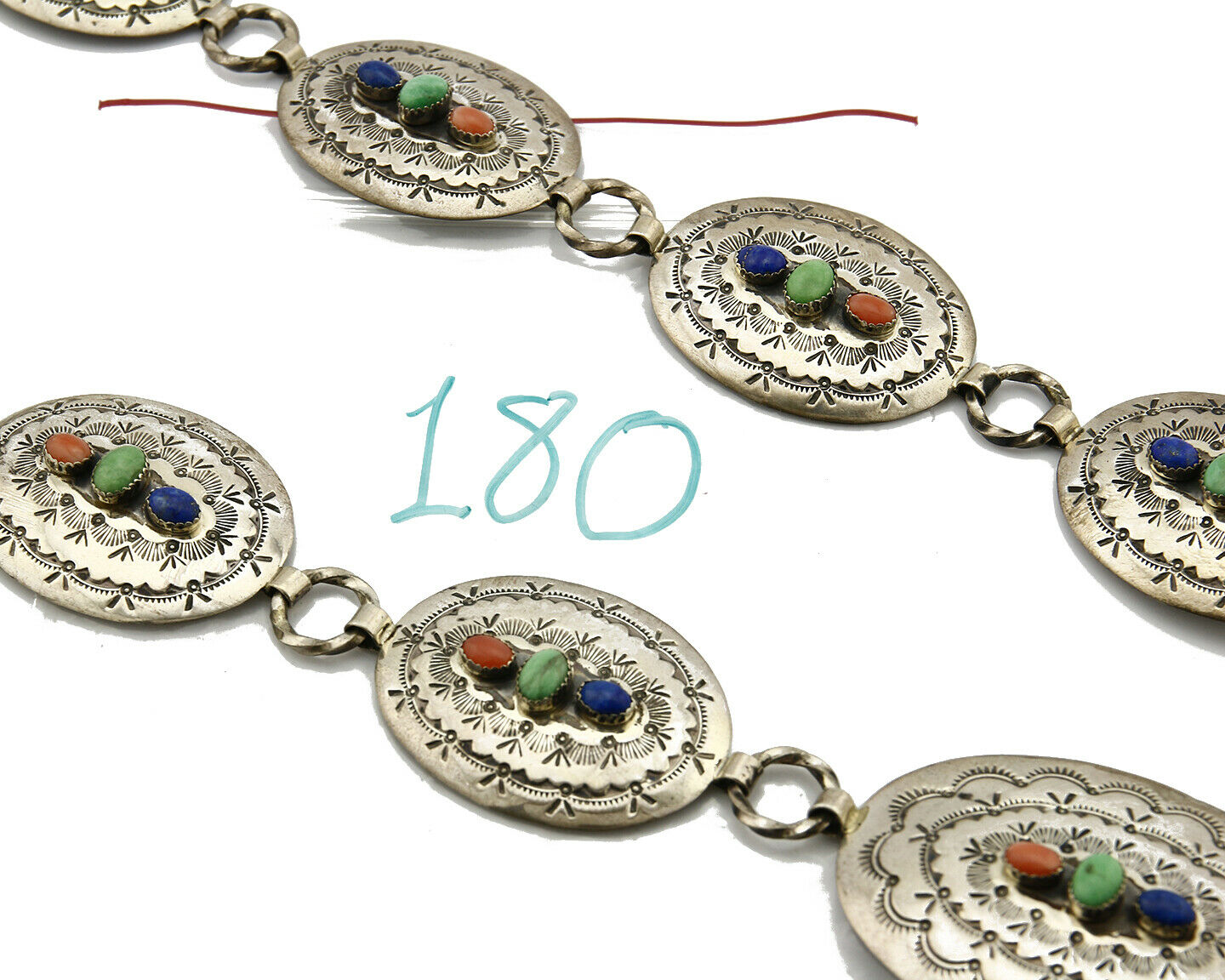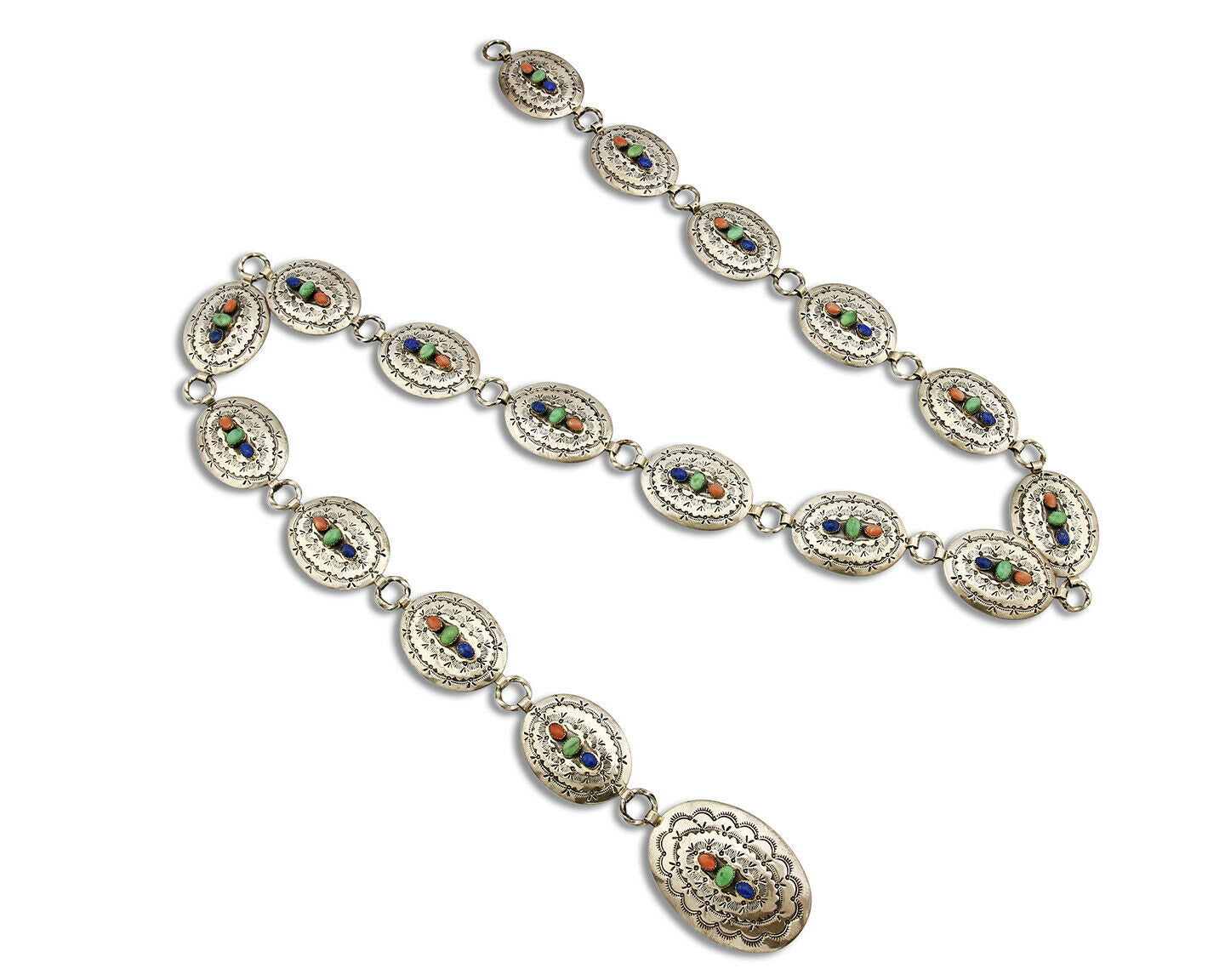 C.1990's Navajo Signed Jerome Begay Gemstone 925 Silver Hand Stamped Concho Belt