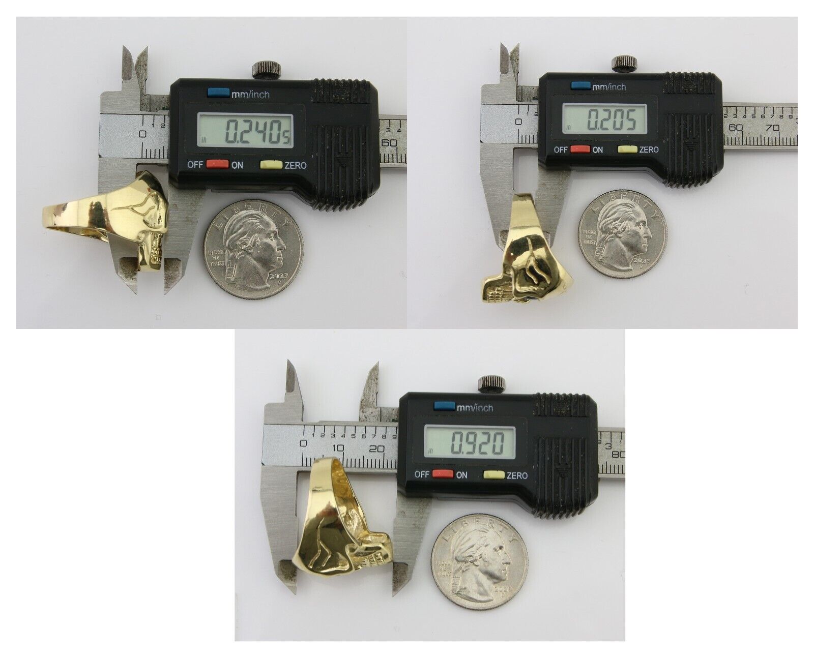 Men 14k SOLID Gold Skull Ring Black Glass Eyes Size 12