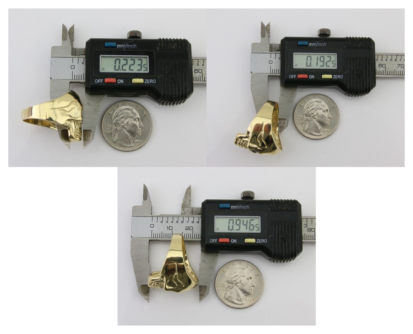 Men 14k SOLID Gold Skull Ring Silica Blue Sapphire Eyes Size 11