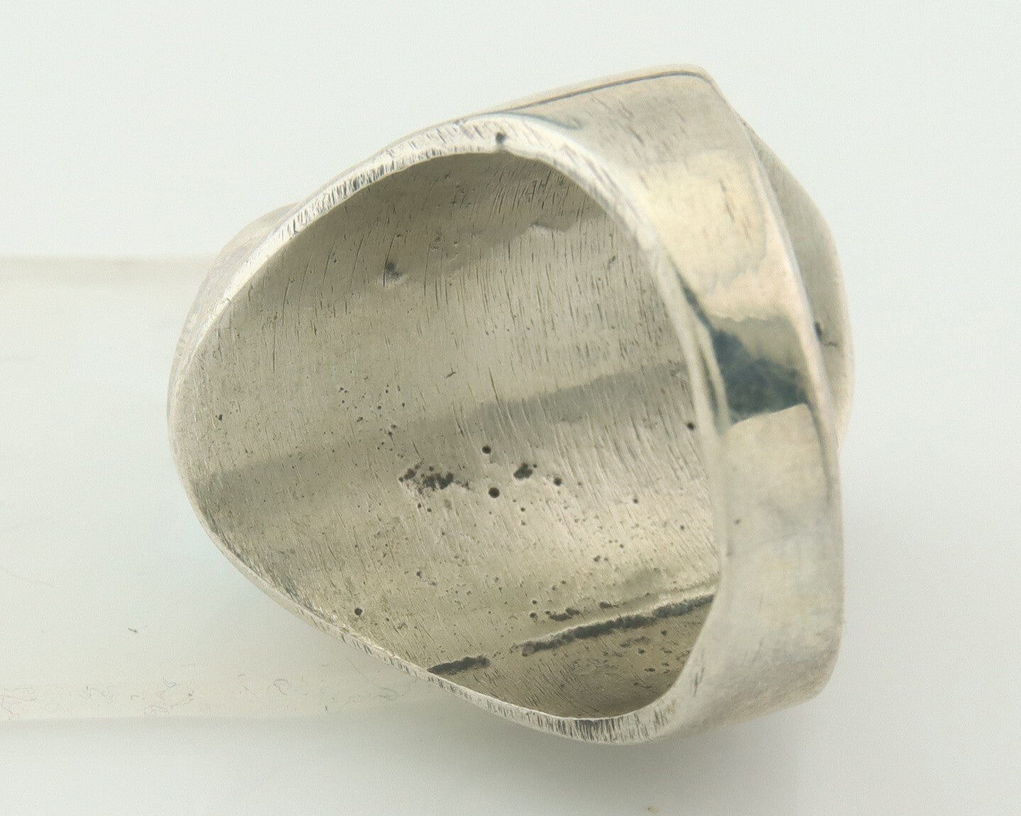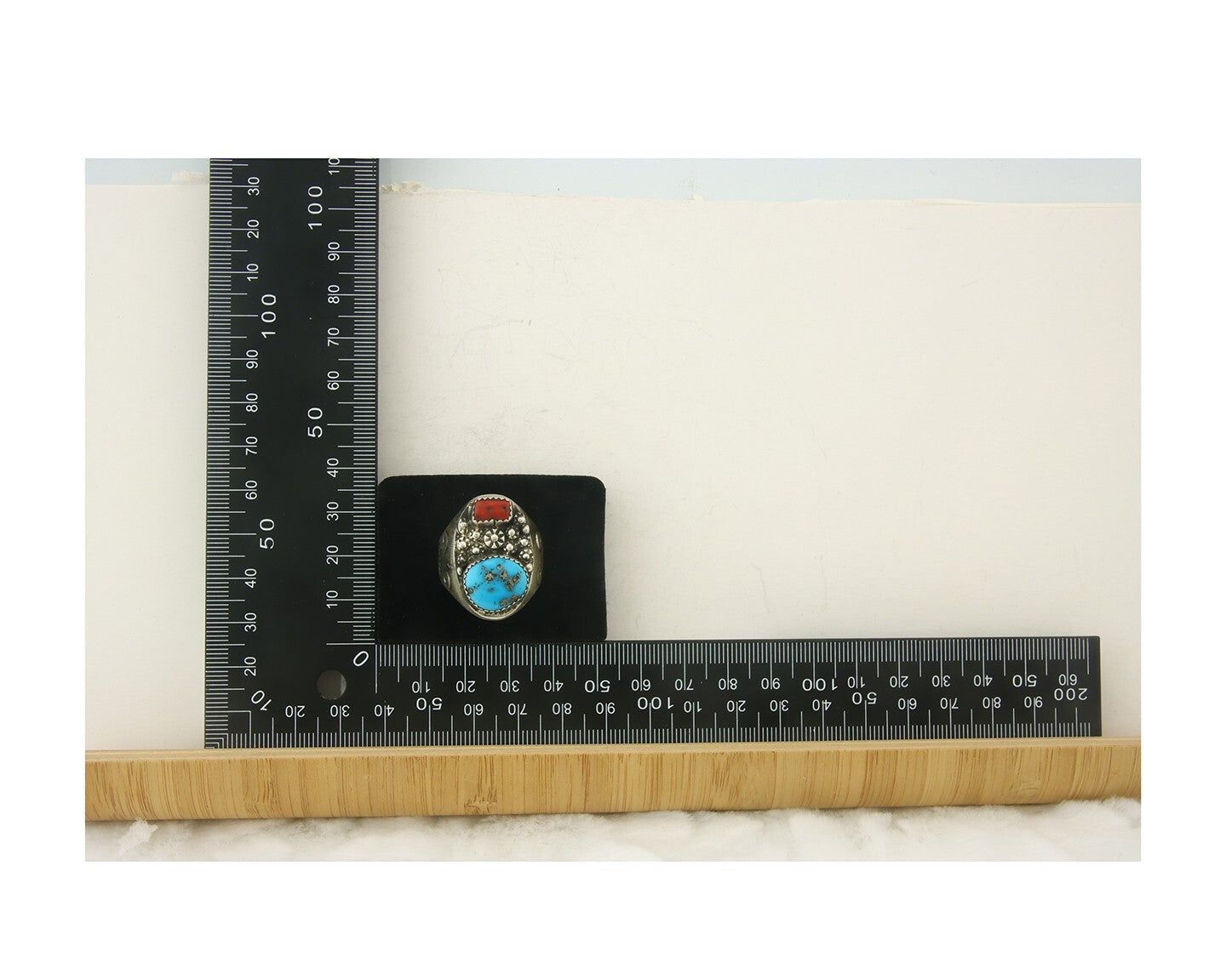 Men Heavy Navajo Ring 925 Sterling Natural Coral & Turquoise C.80's Size 11