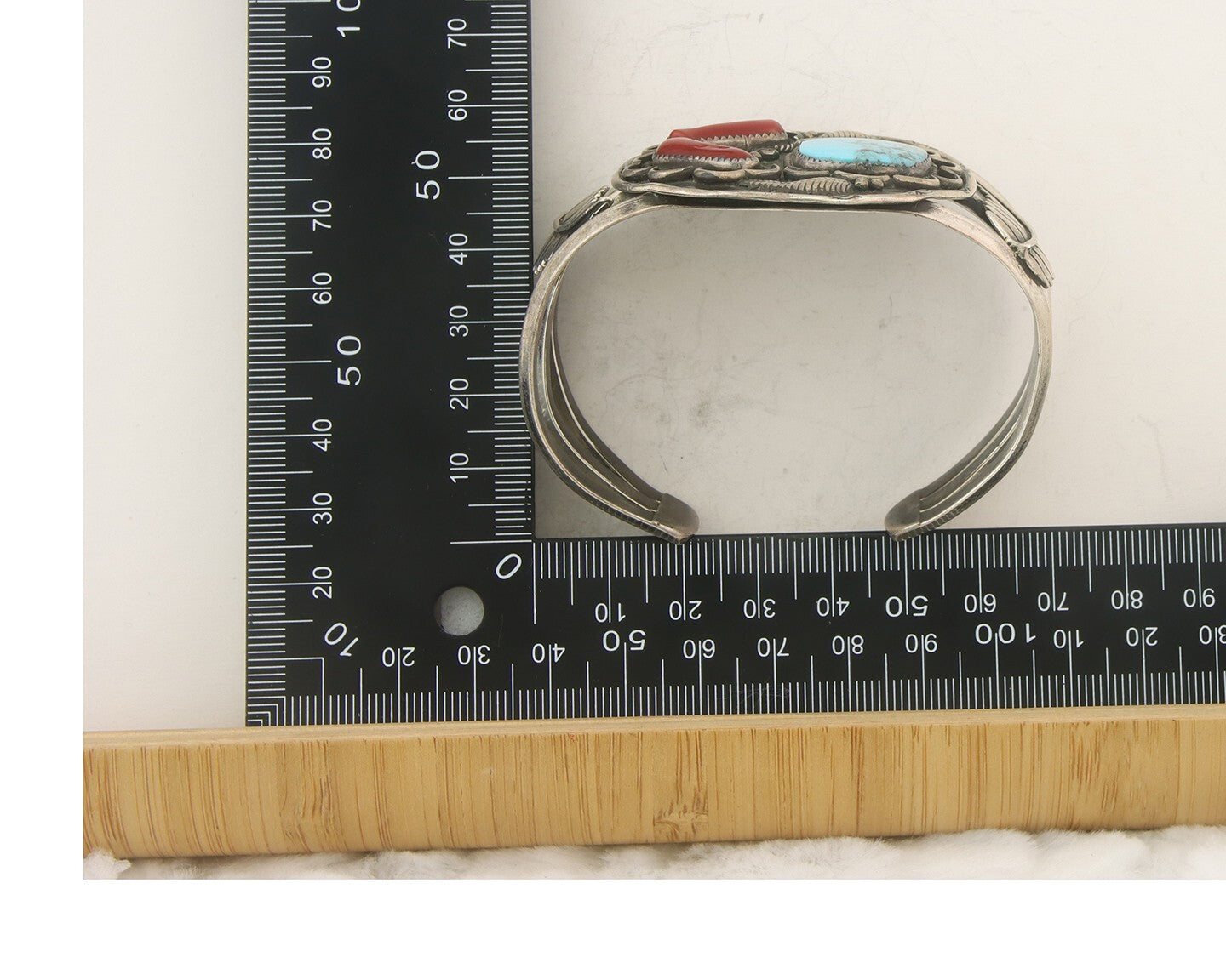 Men Navajo Bracelet 925 Silver Coral & Turquoise Native American Artist C.80's