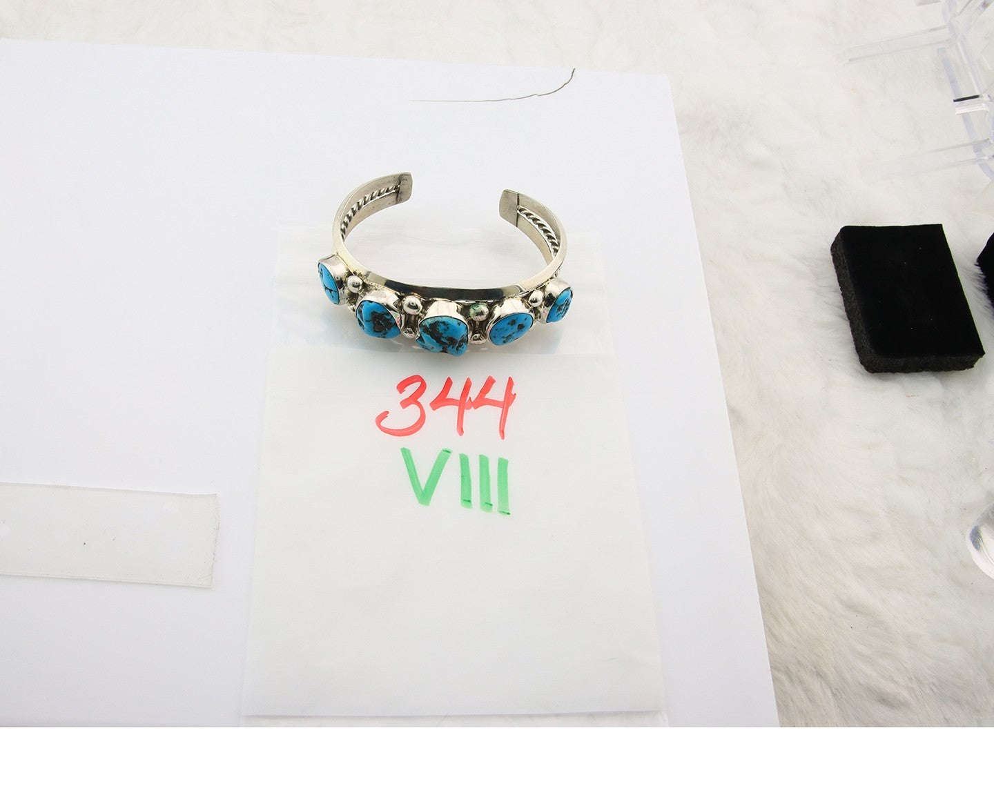Men Navajo Bracelet Sterling Silver Handmade Nugget Turquoise Signed JR