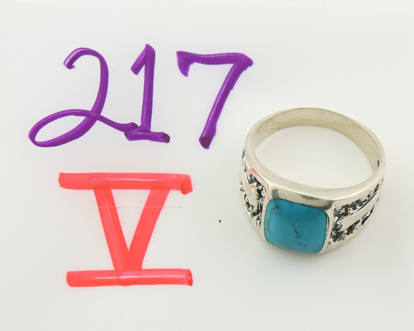Men Vintage Nugget Ring 925 Sterling Turquoise Artist Signed SC Size 10.5