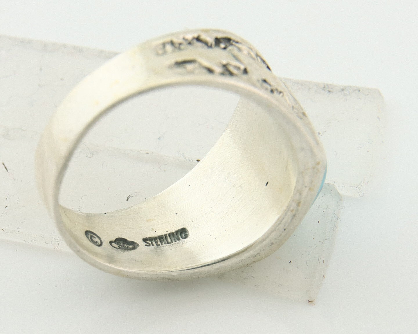 Men Vintage Nugget Ring 925 Sterling Turquoise Artist Signed SC Size 10
