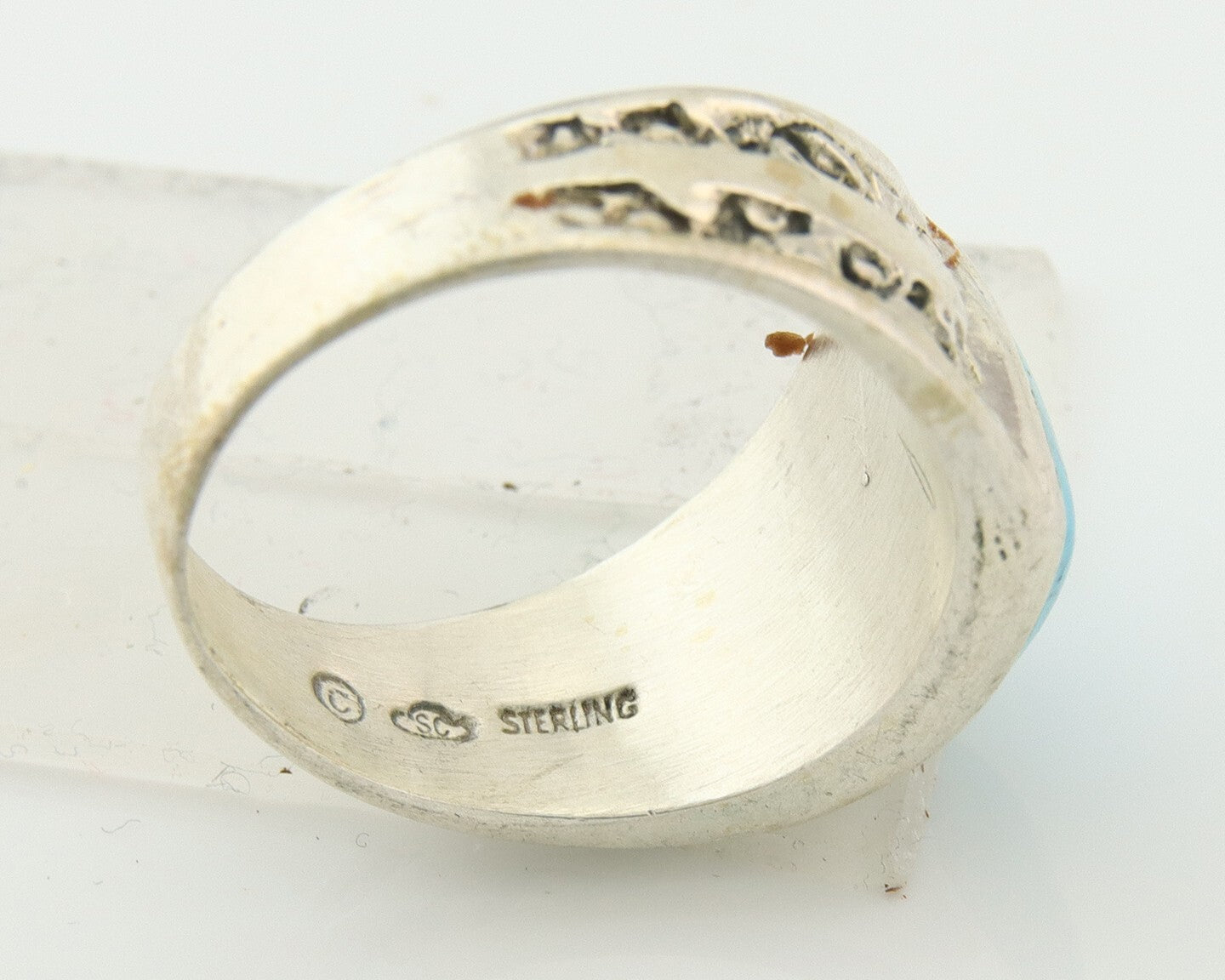 Men Vintage Nugget Ring 925 Sterling Turquoise Artist Signed SC Size 10