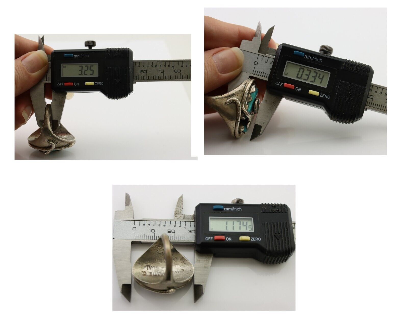 Mens Heavy Zuni Snake Ring 925 Silver Turquoise Signed EFFIE CALAVASA C.80's