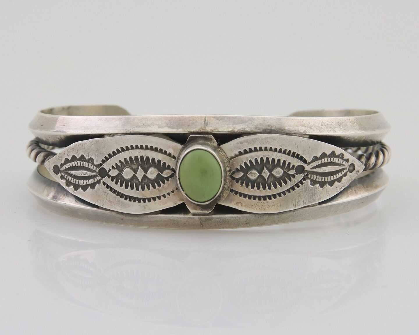 Navajo 925 Silver Handmade Bracelet Green Turquoise Native C.80's