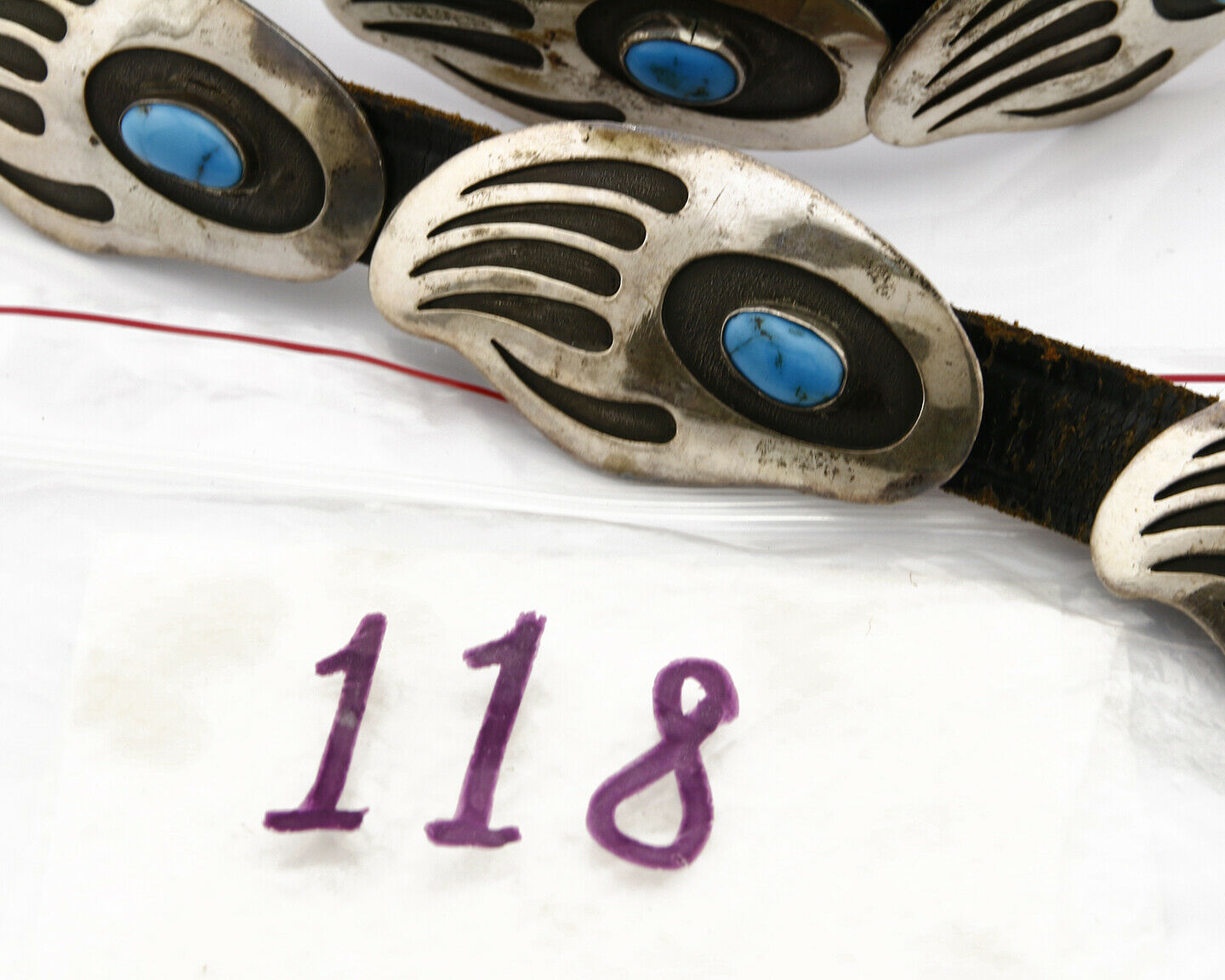 Navajo Bear Claw Concho Belt .925 Silver Turquoise Signed Aaron Chischiligi C80s