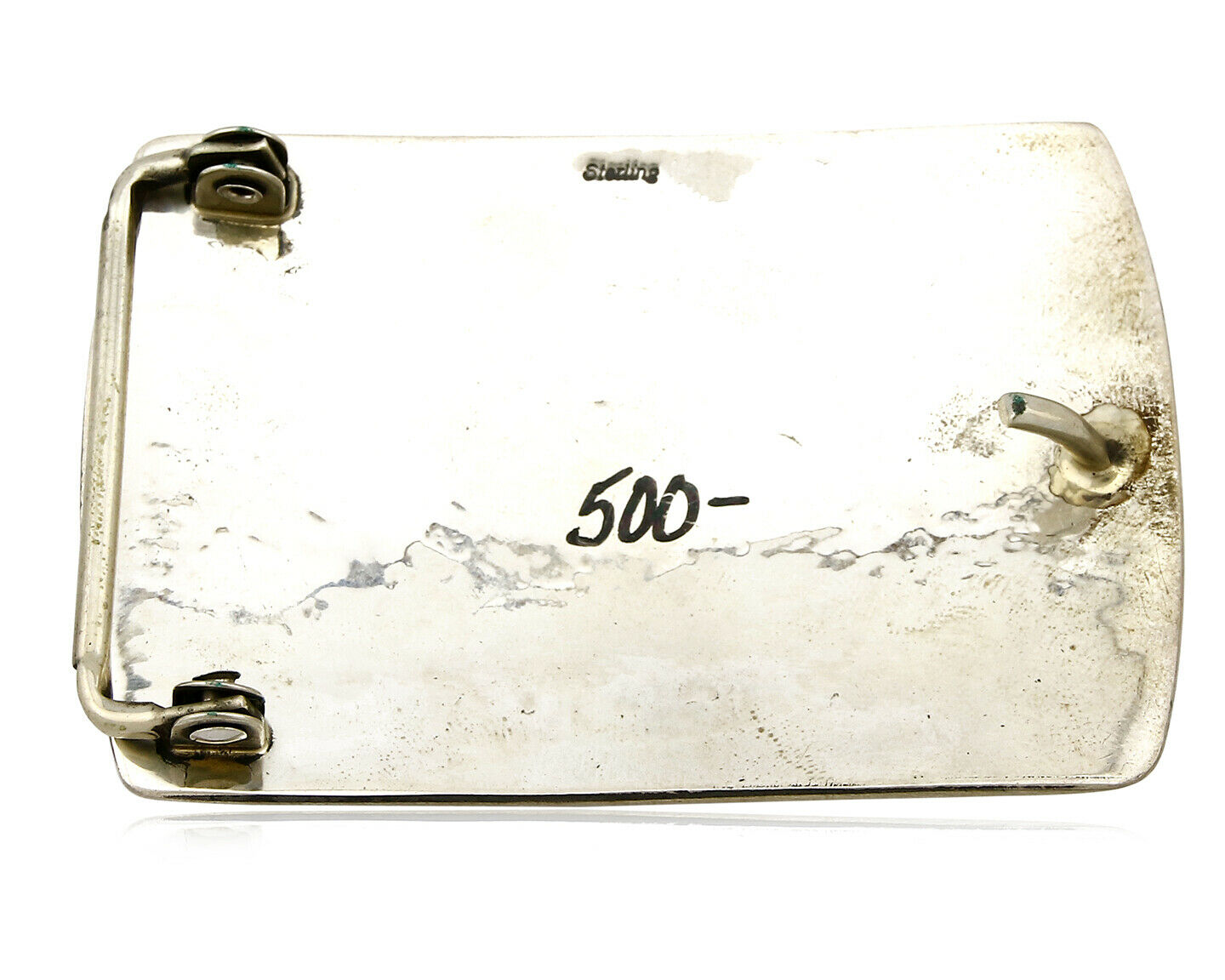 Navajo Belt Buckle .925 SOLID Sterling Silver Handmade Overlay Circa 1980's