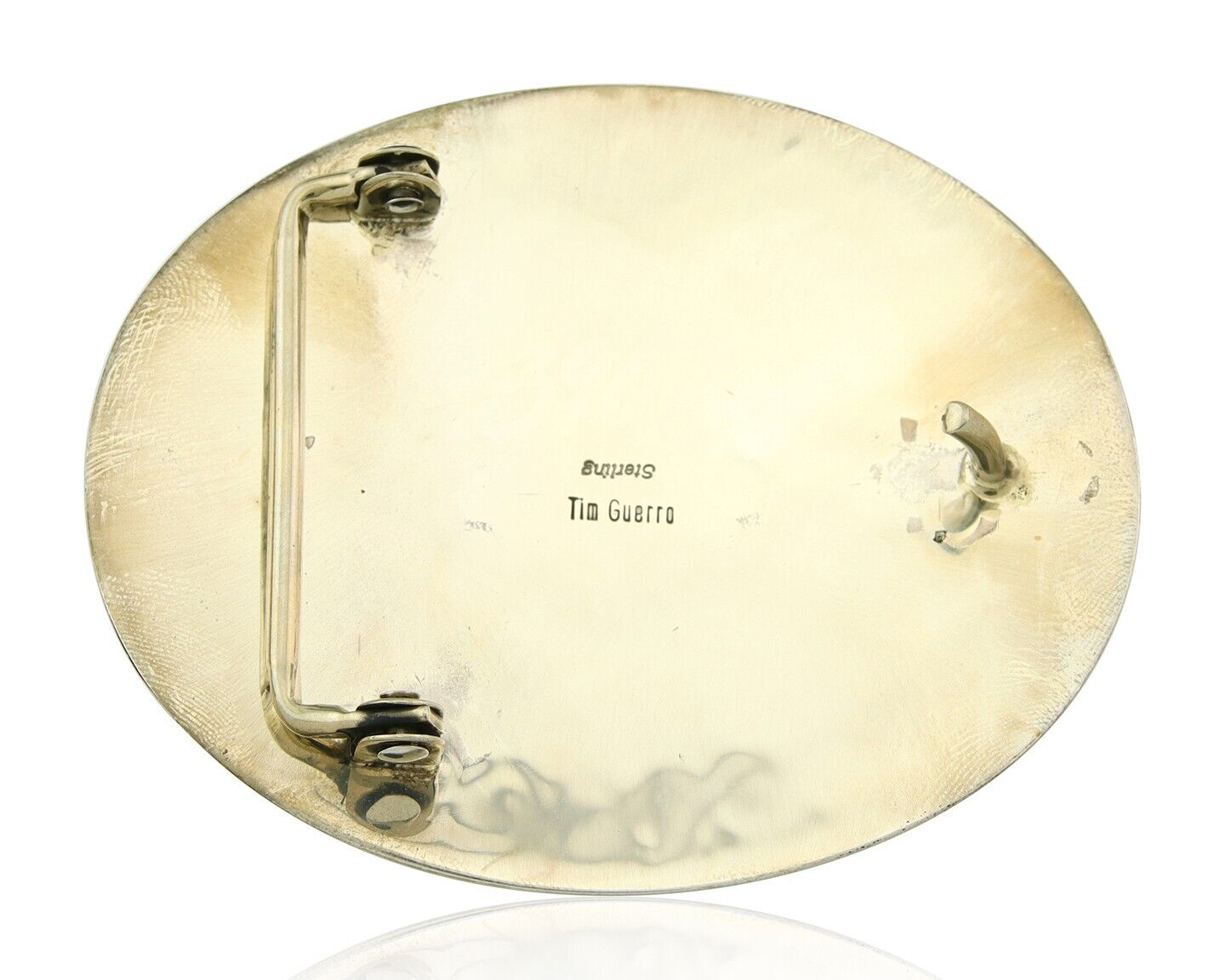 Navajo Belt Buckle 925 Sterling Silver Artist Signed Tim Guerro 2.5x3 in C.80's