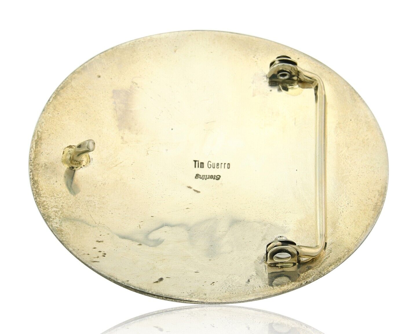 Navajo Belt Buckle 925 Sterling Silver Artist Signed Tim Guerro 2.5x3 in C.80's