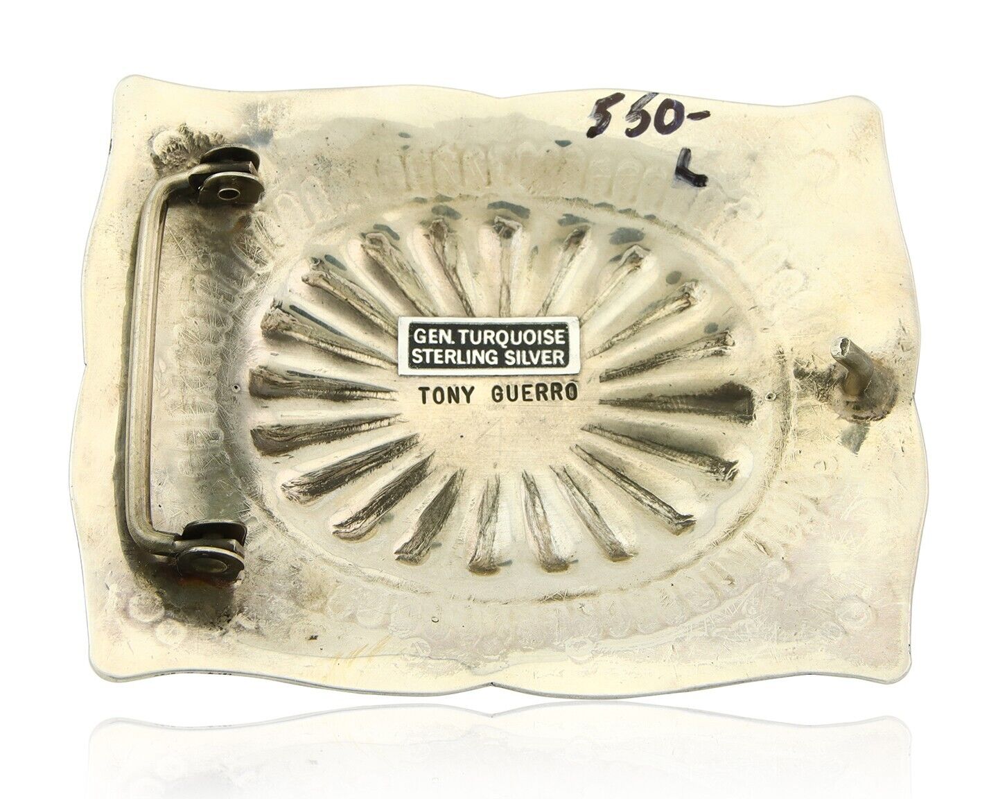 Navajo Belt Buckle 925 Sterling Silver Turquoise Artist Signed Tony Guerro C80s