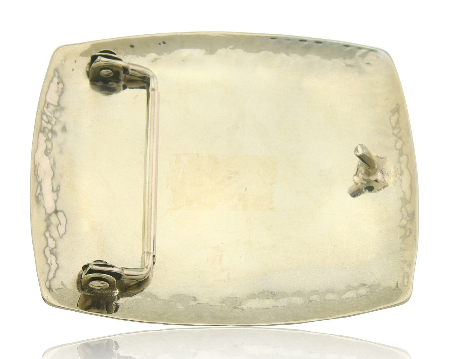 Navajo Belt Buckle .999 Nickel Agate Native Artist Handmade 2.5 x 3.0 in C.80s