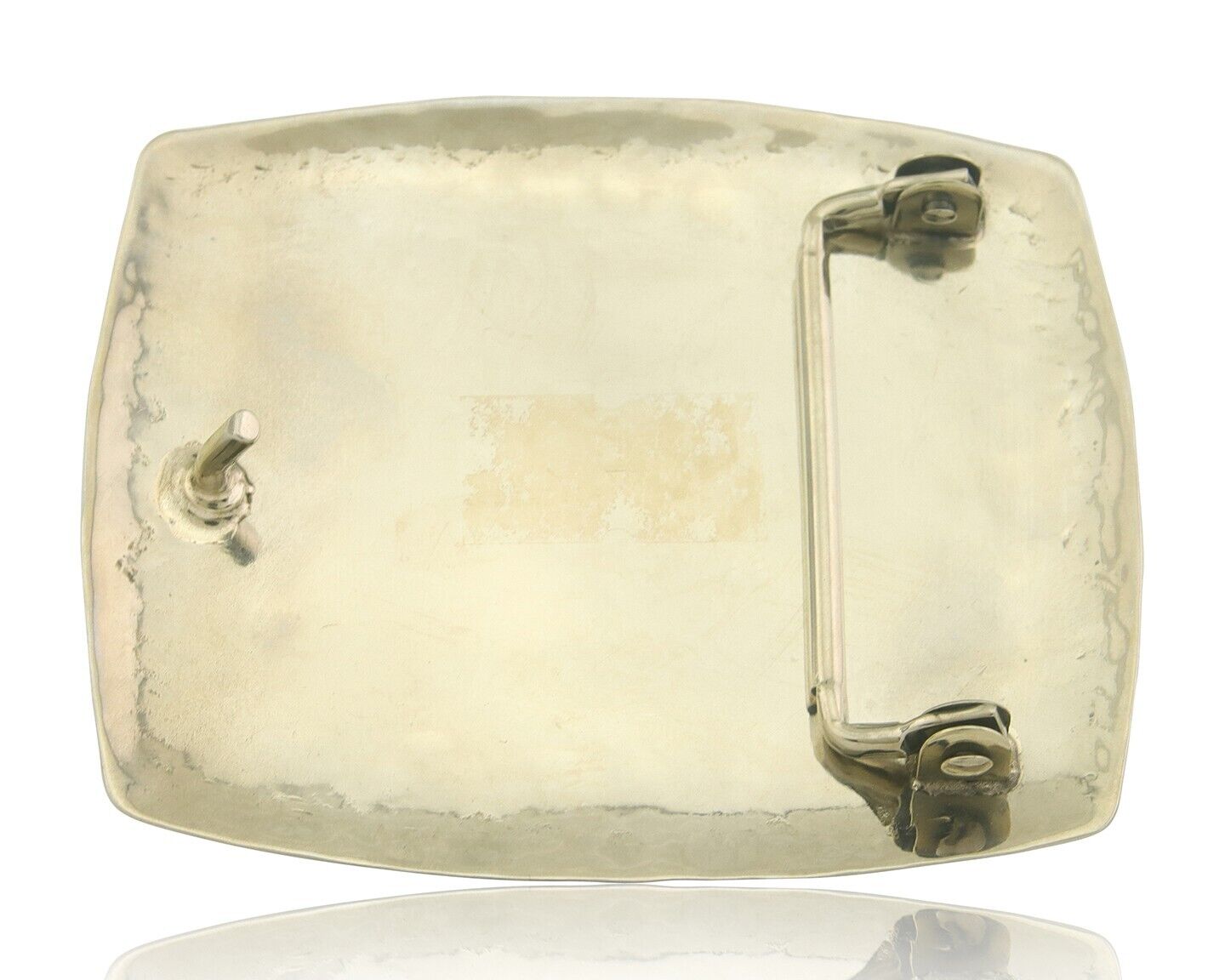Navajo Belt Buckle .999 Nickel Agate Native Artist Handmade 2.5 x 3.0 in C.80s