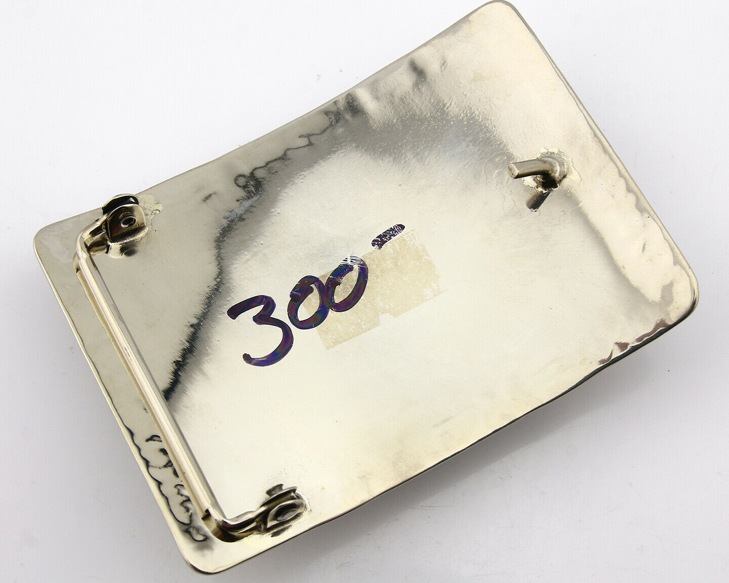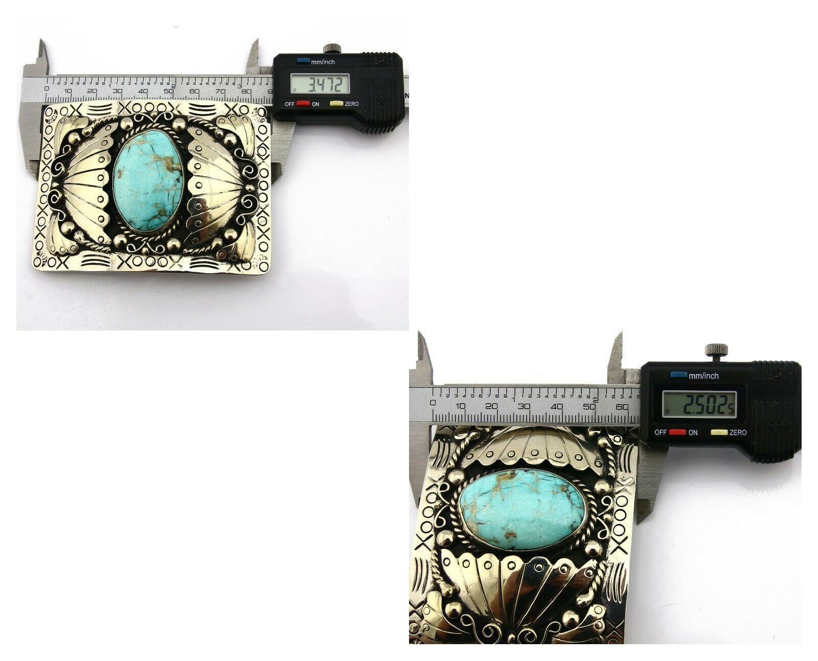 Navajo Belt Buckle .999 Nickle Silver Morenci Turquoise Native Artist C.80's