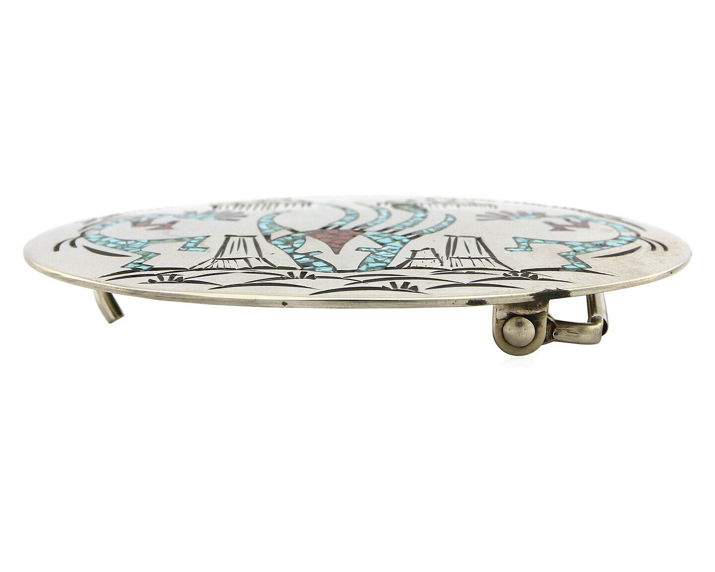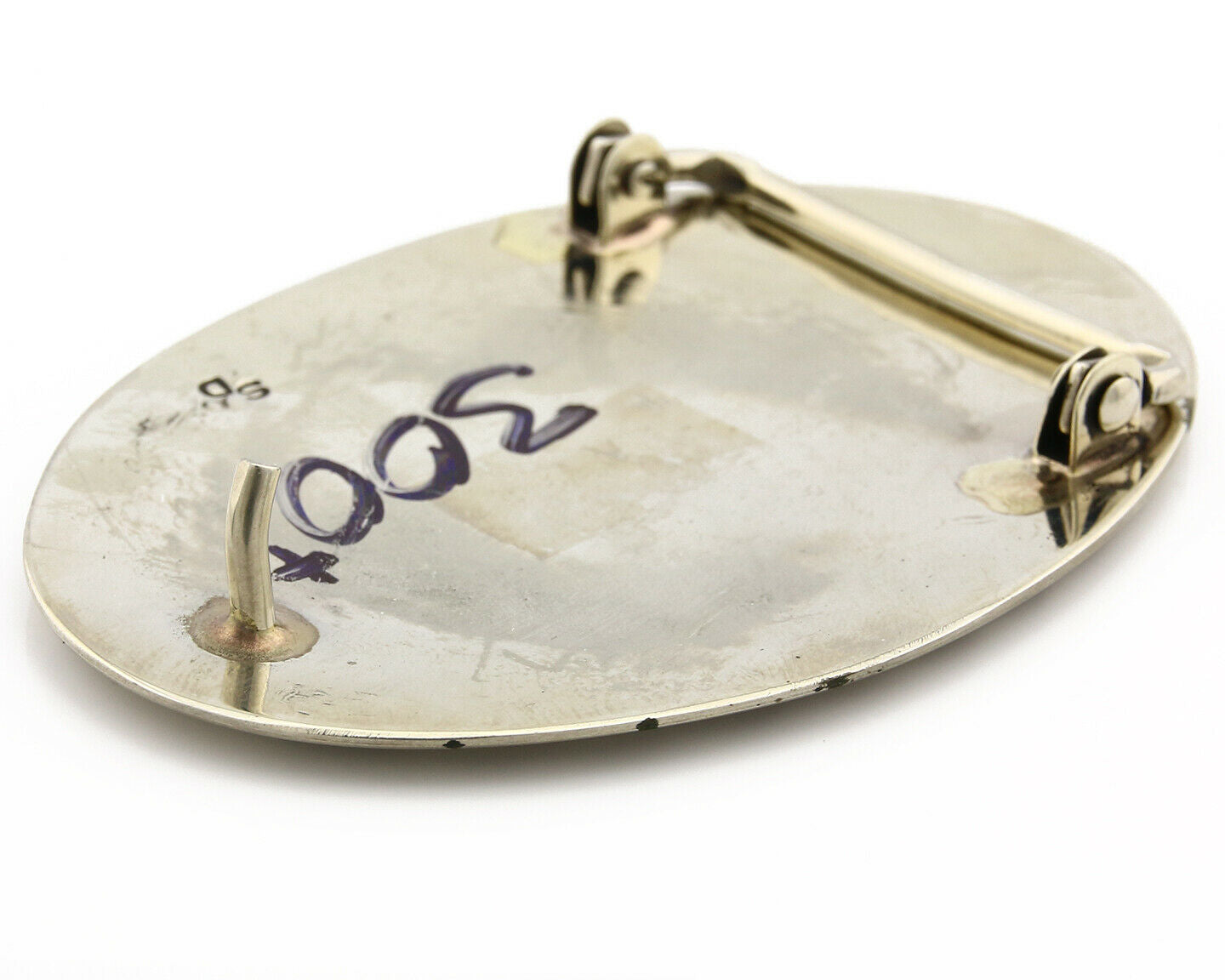Navajo Belt Buckle .999 Nickle Silver Turquoise Coral Signed SD C.80's
