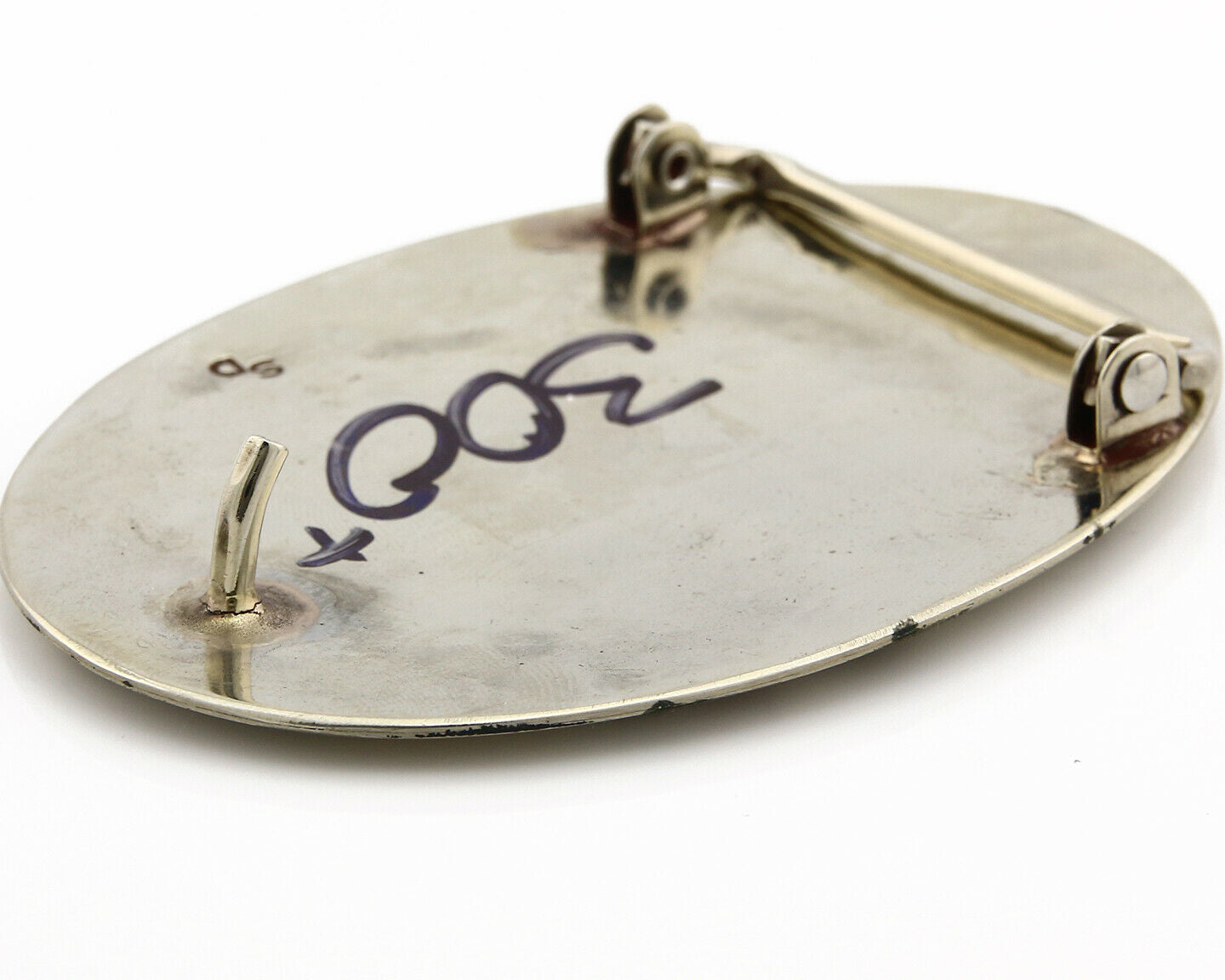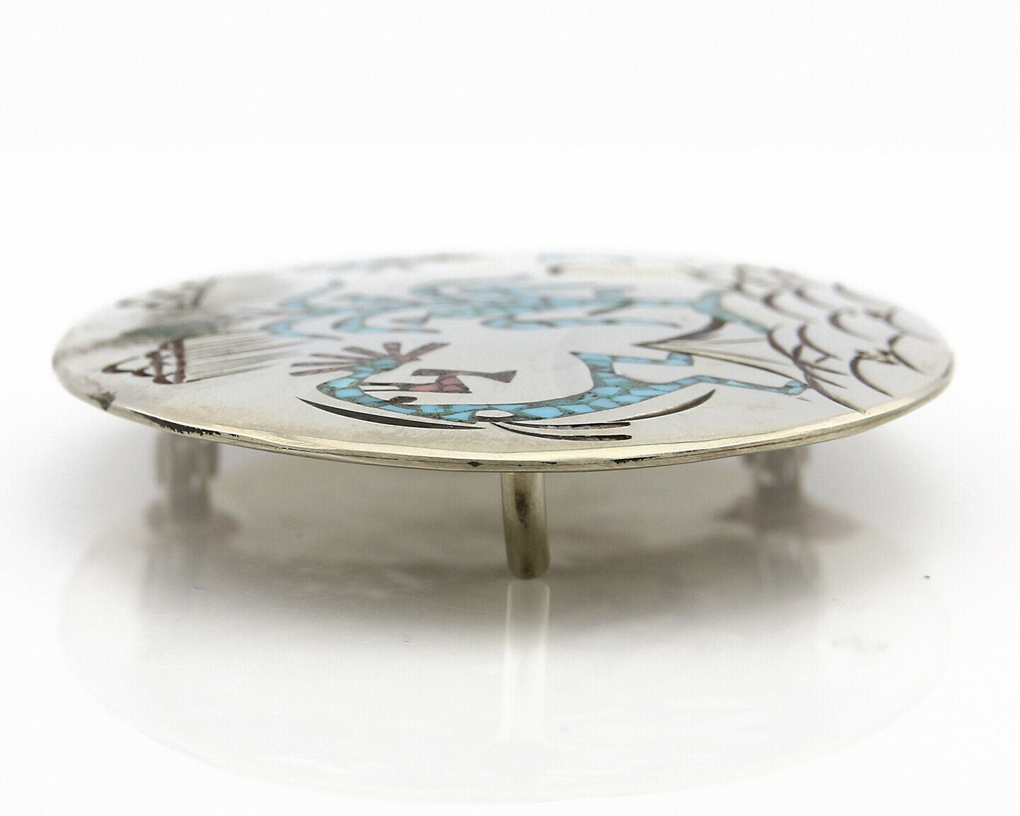 Navajo Belt Buckle .999 Nickle Silver Turquoise Coral Signed SD C.80's