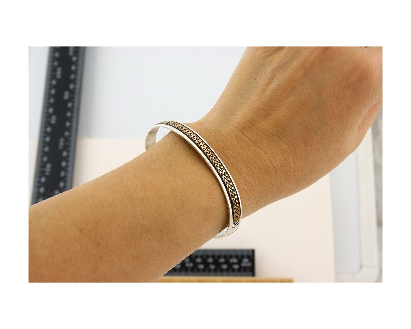 Navajo Bracelet 925 Silver & 12k Yellow Gold Filled Signed R C.80's