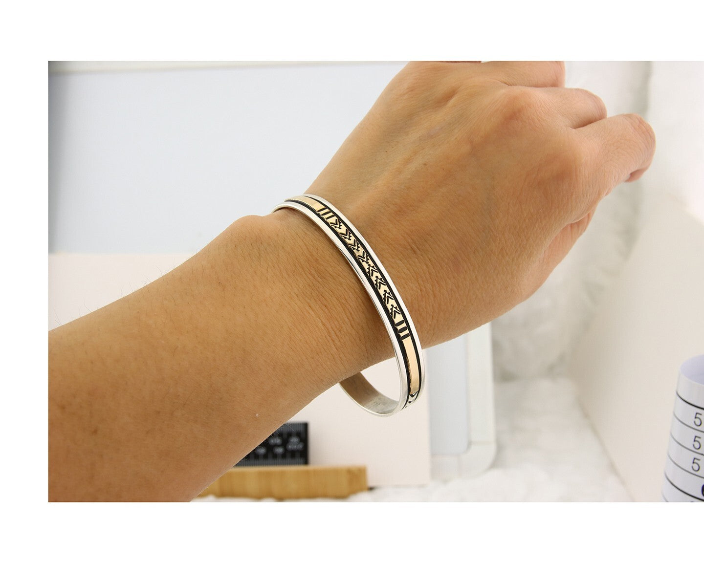 Navajo Bracelet 925 Silver & 12k Yellow Gold Plated Signed Thomas Singer C.80's