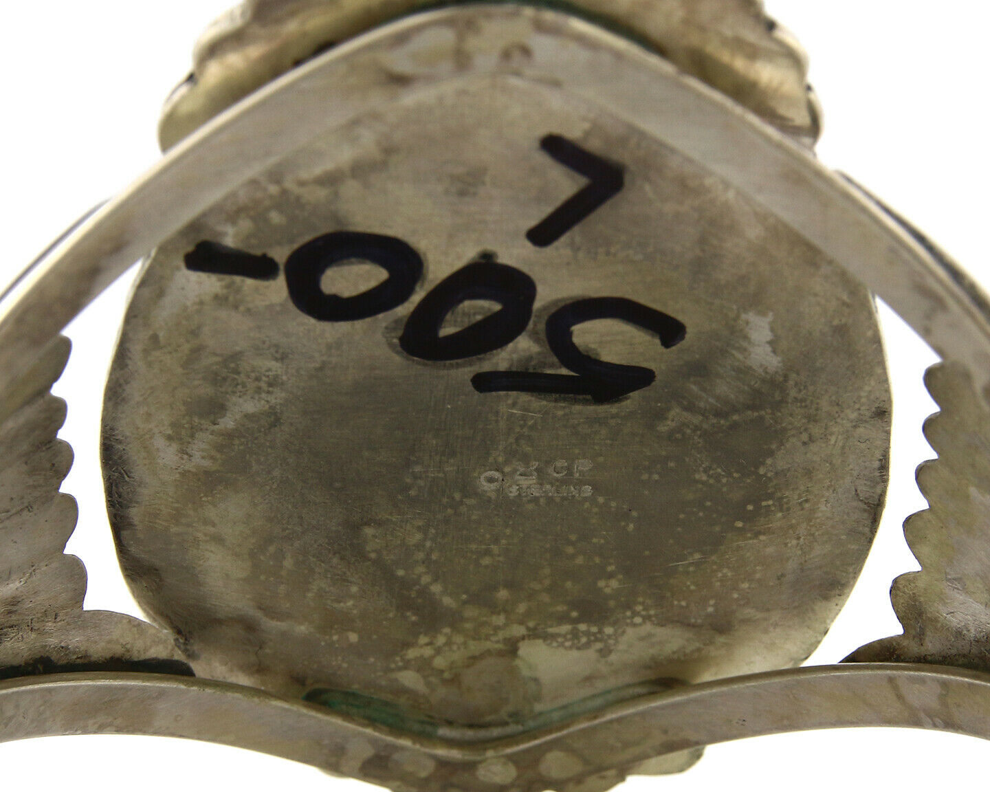 Navajo Bracelet .925 Silver Artist Carol Felley Natural Malachite C.80's