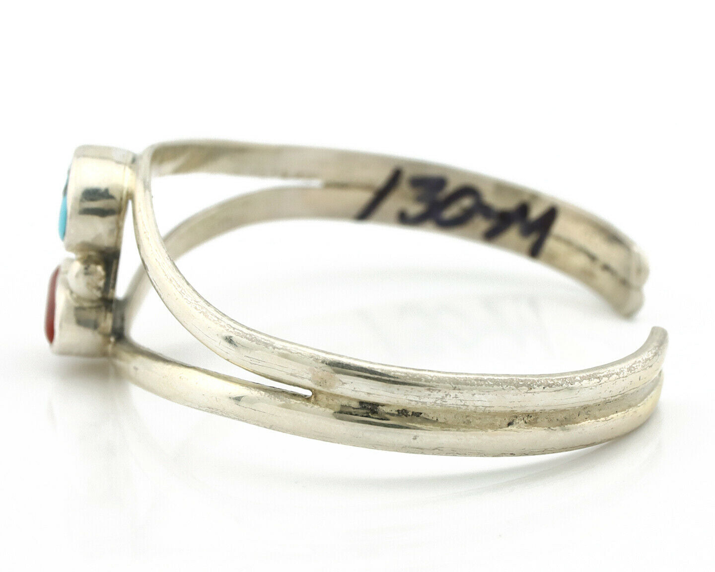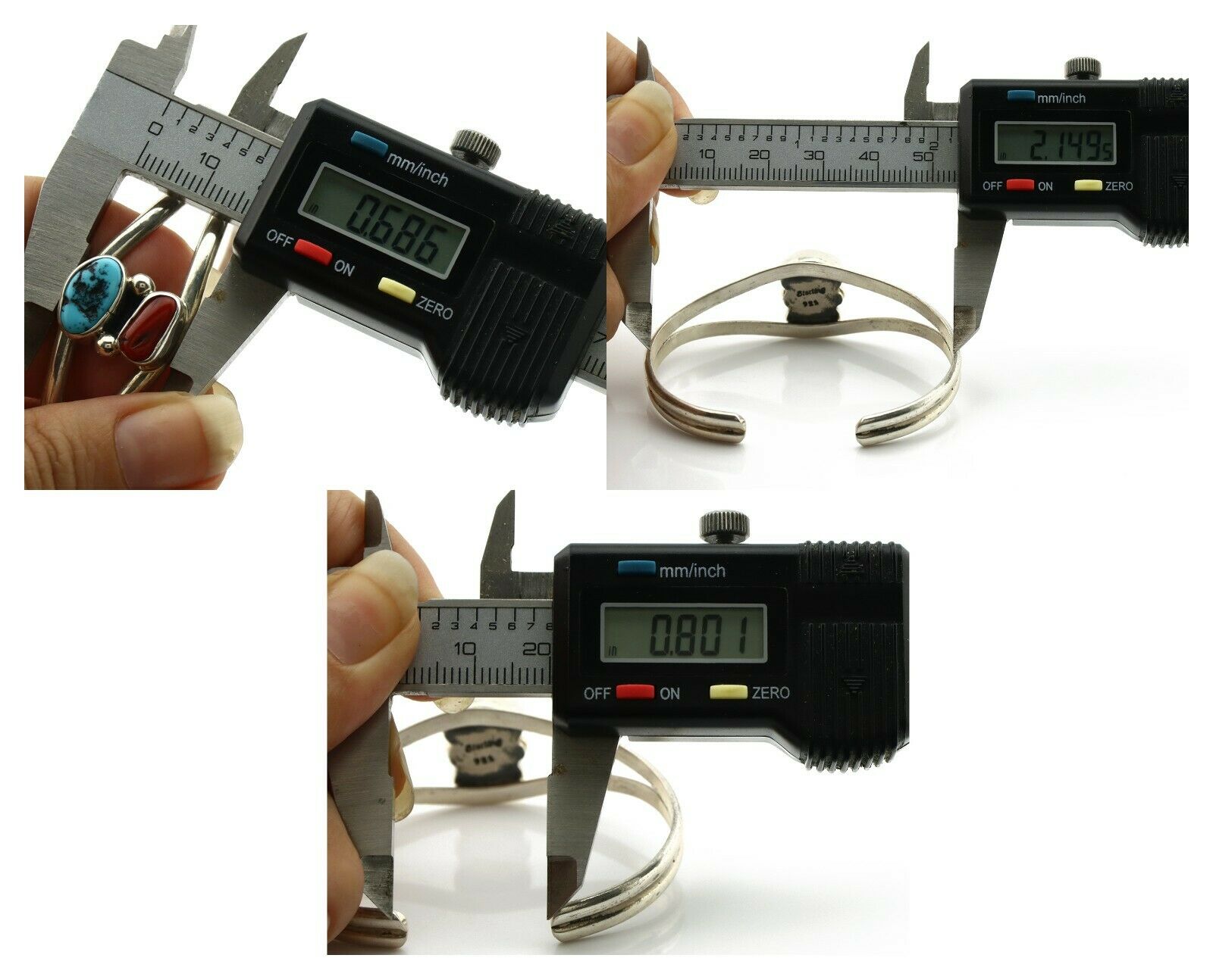 Navajo Bracelet .925 Silver Coral & Turquoise Native American Artist C.90's