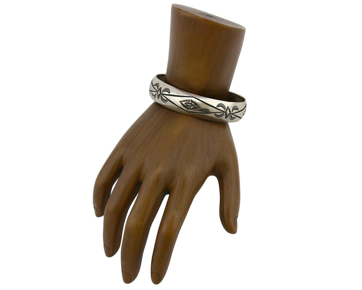 Navajo Bracelet .925 Silver Hand Stamped Artist Signed Tracy C.80's
