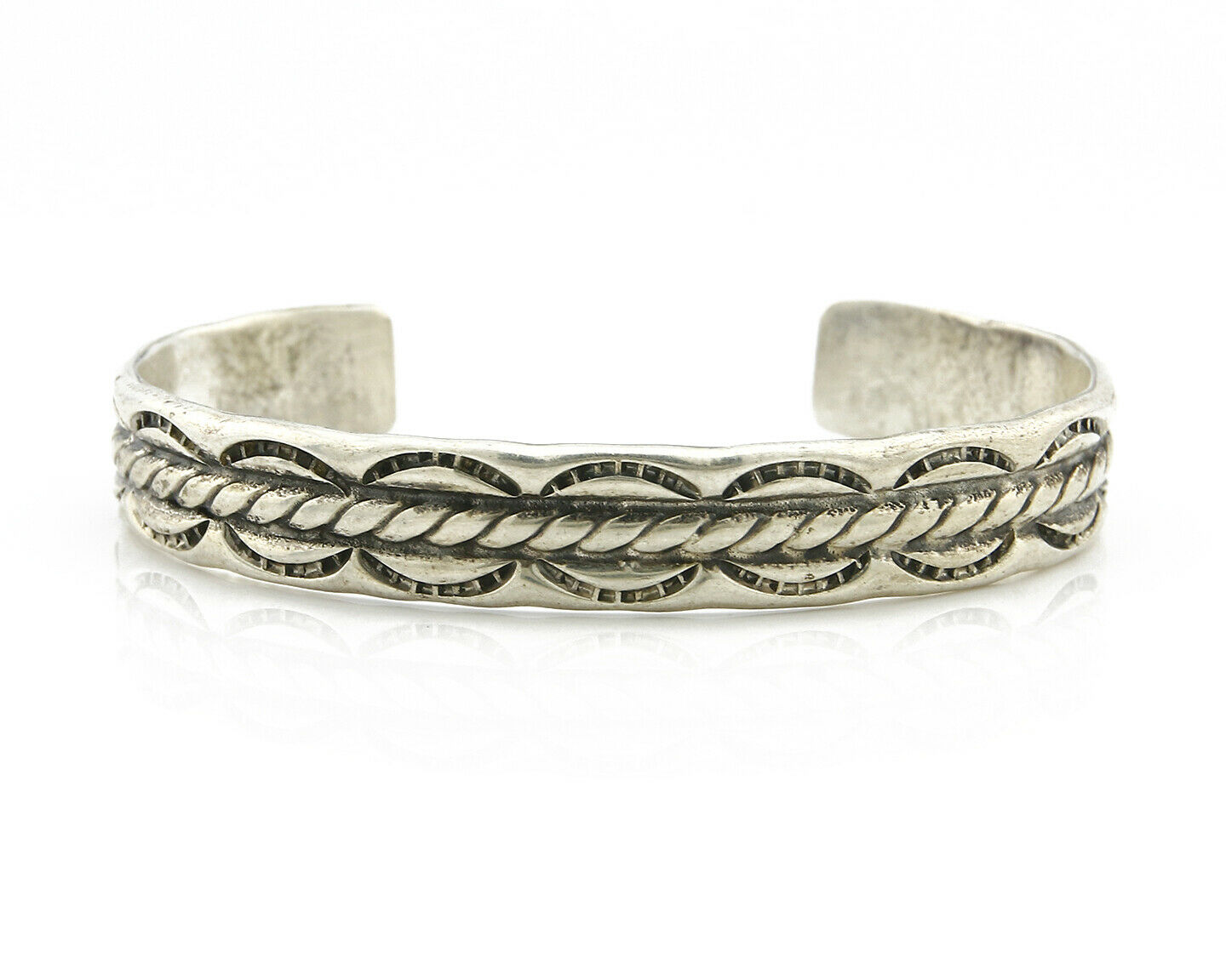 Navajo Bracelet .925 Silver Handmade Hand Stamped Signed Artist C Montoya C.80's
