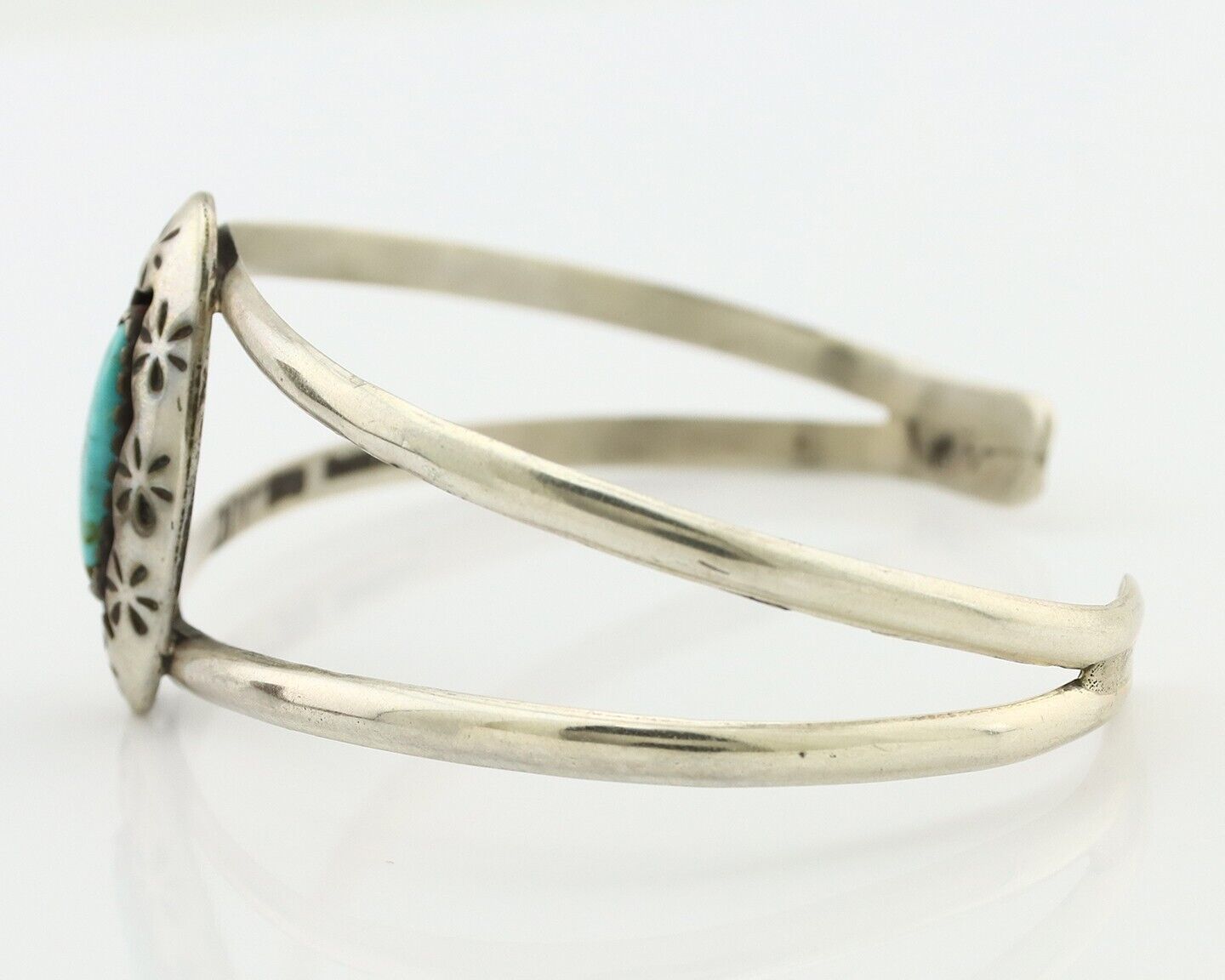 Navajo Bracelet 925 Silver Kingman Turquoise Artist Signed IJC C.80's