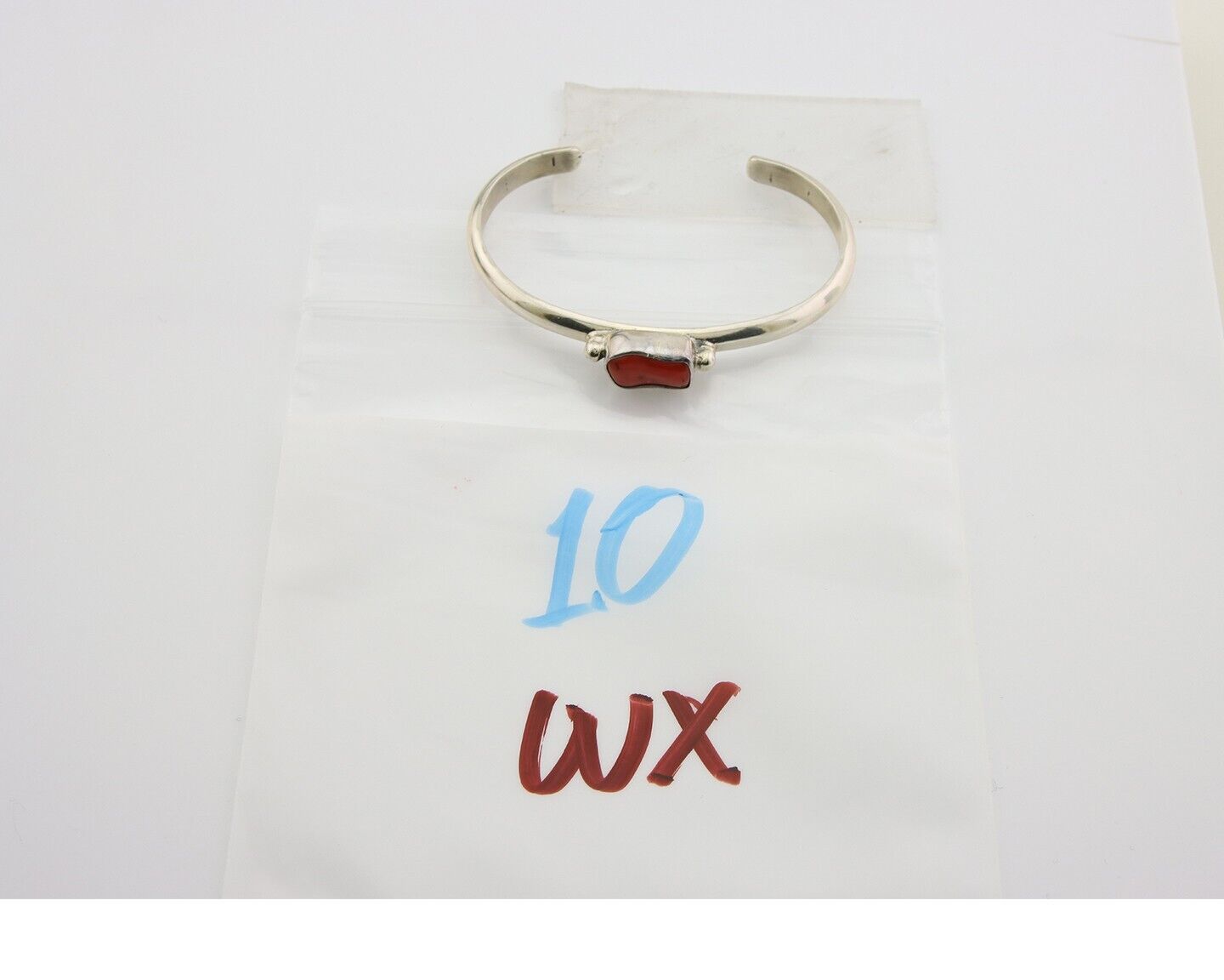 Navajo Bracelet .925 Silver Mediterranean Red Coral Cuff Native Artist C.80's
