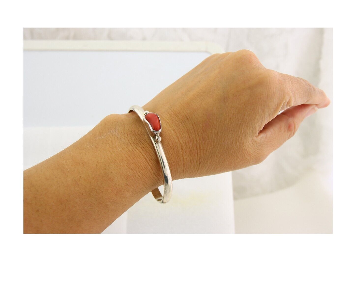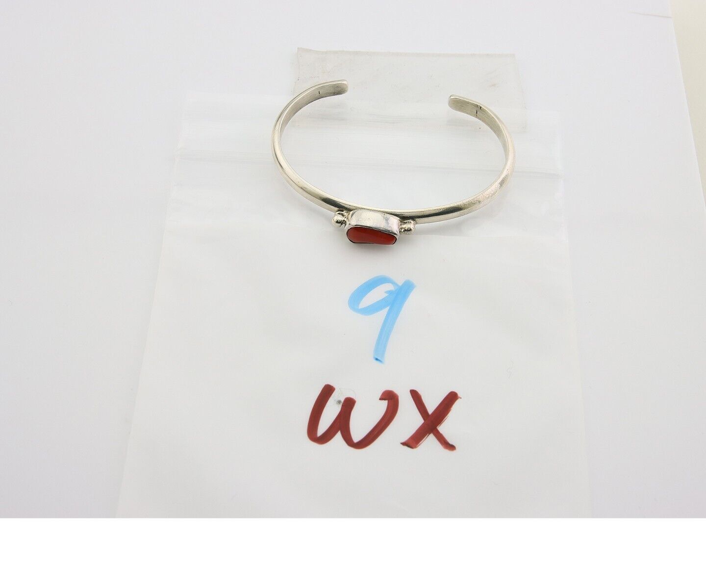 Navajo Bracelet .925 Silver Mediterranean Red Coral Cuff Native Artist C.80's