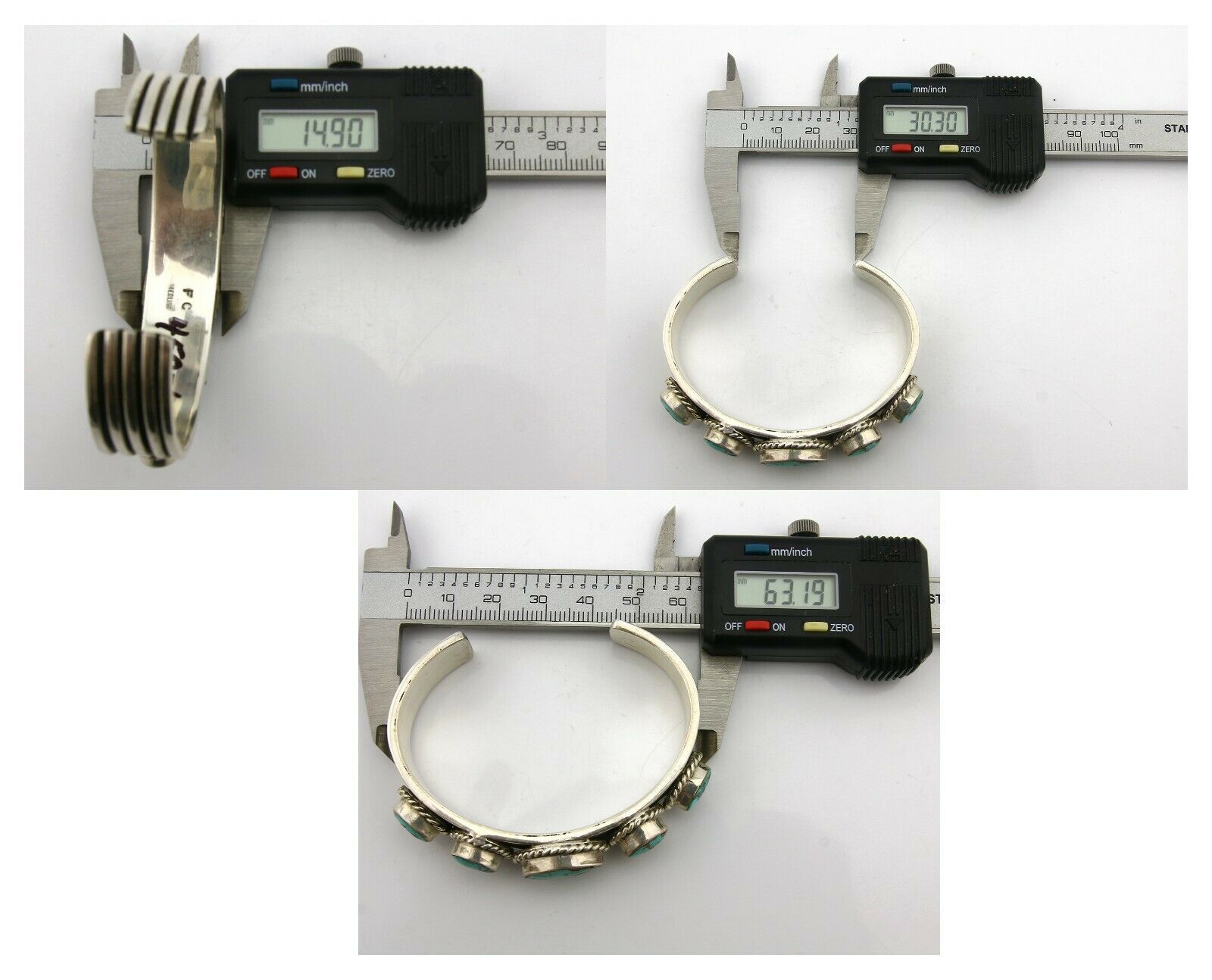 Navajo Bracelet .925 Silver Morenci Turquoise Cuff Artist Signed PC C.80's