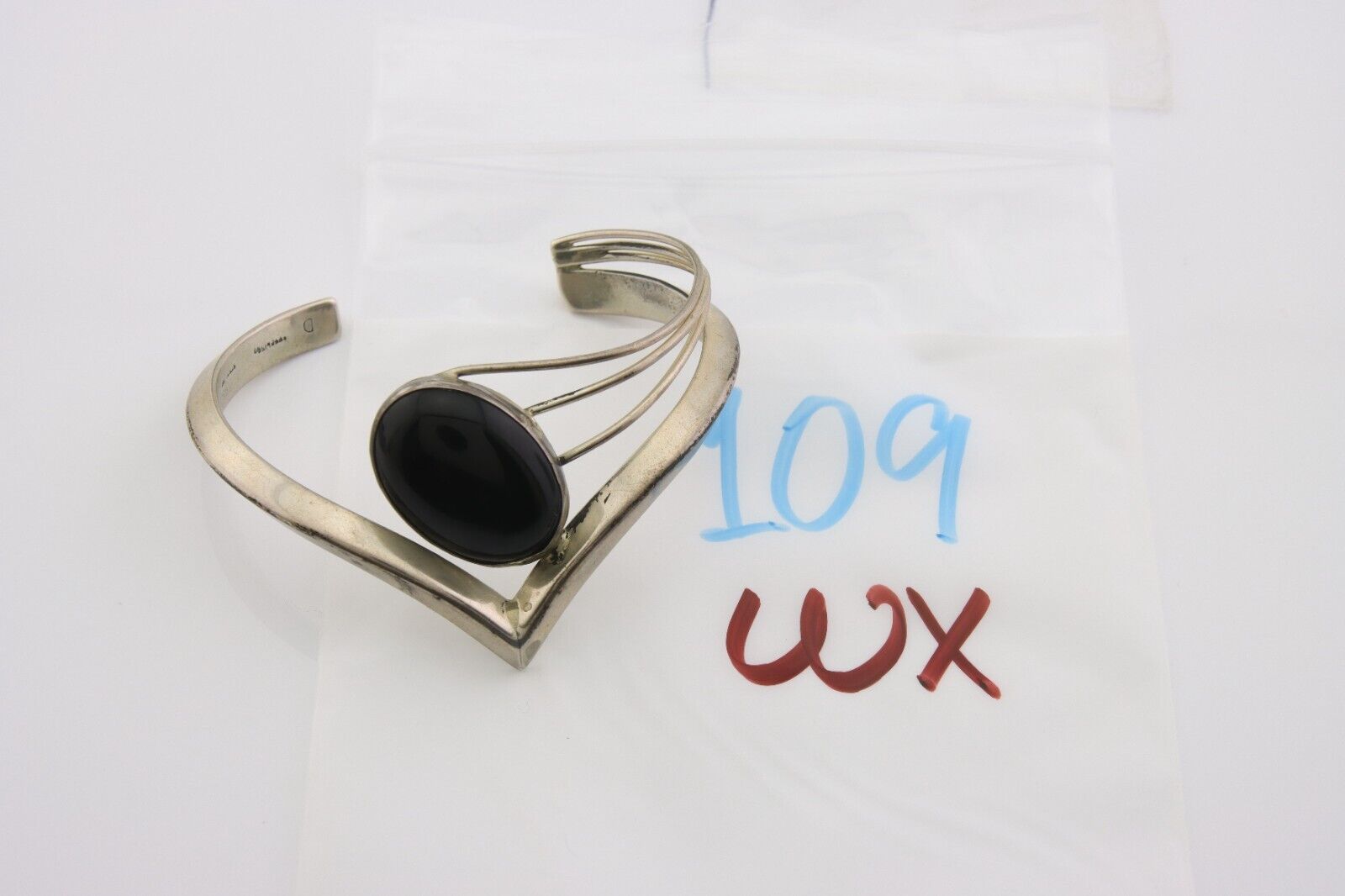Navajo Bracelet 925 Silver Natural Onyx Cuff Artist Signed D Zachary C.80's