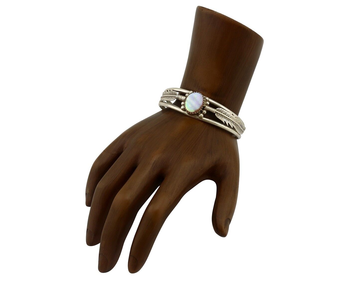 Navajo Bracelet 925 Silver Natural Pink Mussel Native American Signed Begay C80s