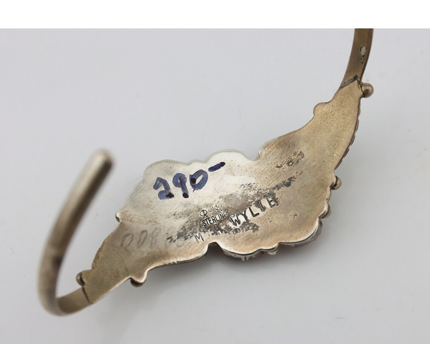 Navajo Bracelet 925 Silver Natural Red Coral Artist Signed MA WYLIE C.80's