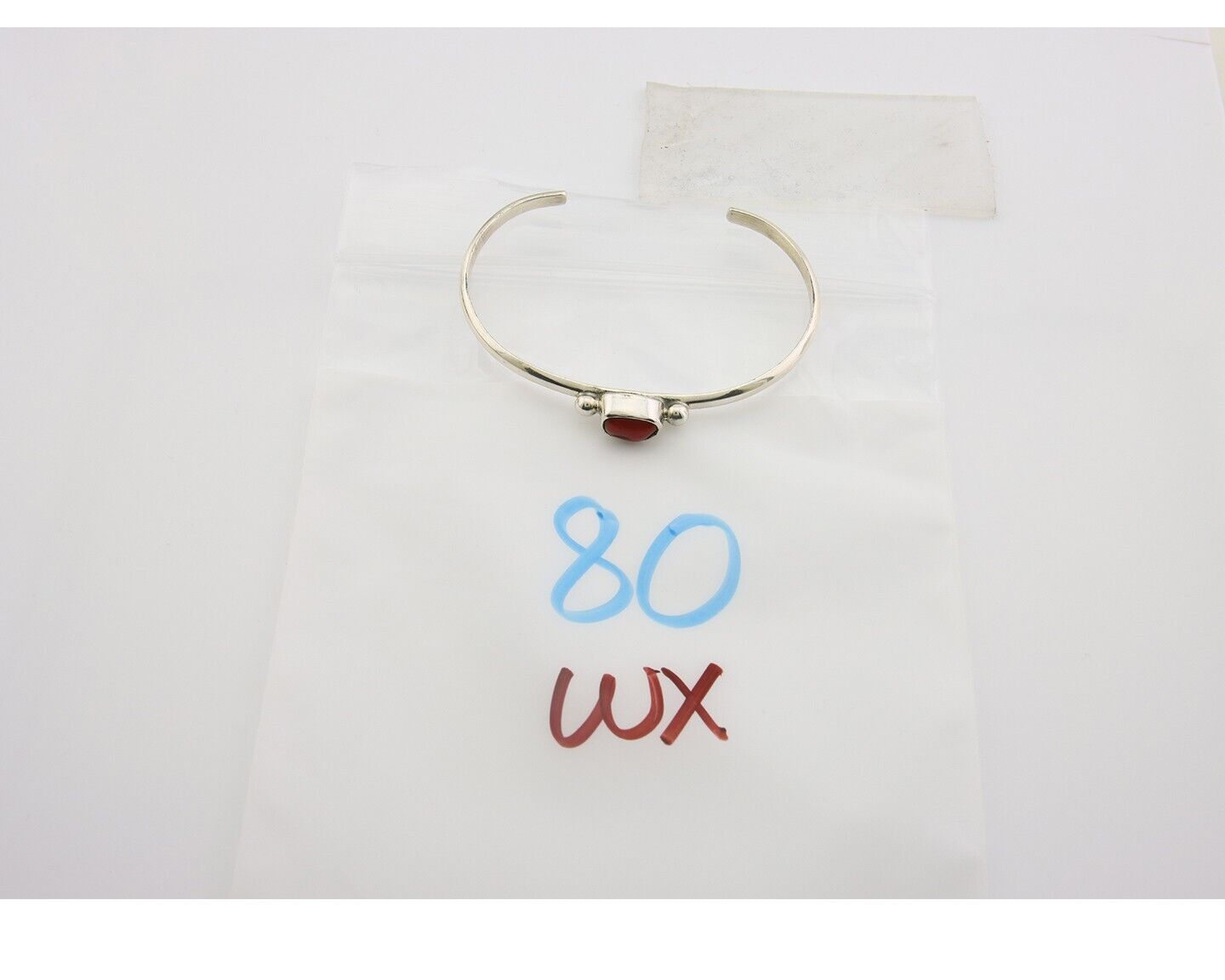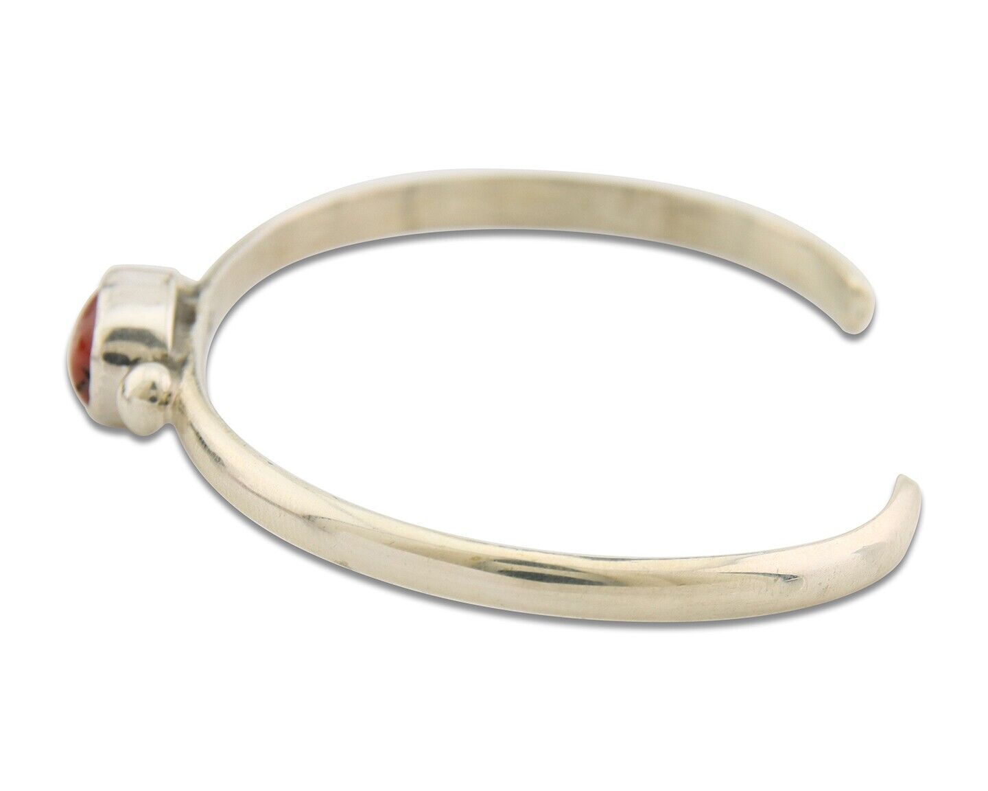 Navajo Bracelet .925 Silver Natural Red Coral Cuff Native American Artist C.80's