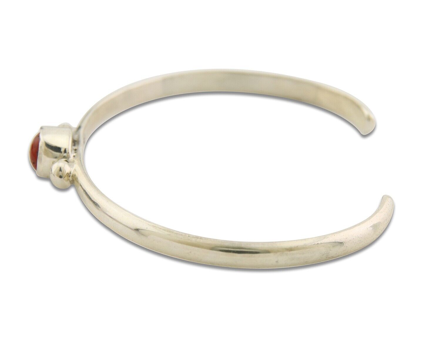 Navajo Bracelet .925 Silver Natural Red Coral Cuff Native American Artist C.80's