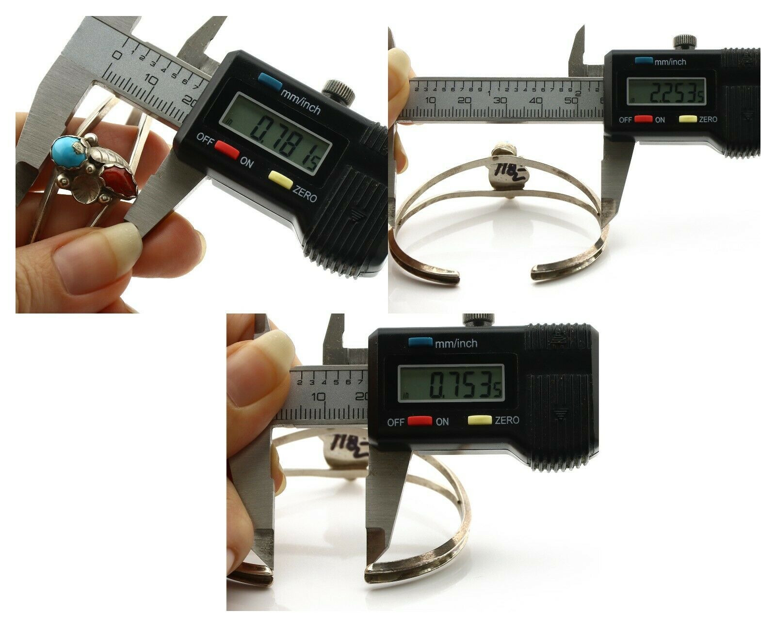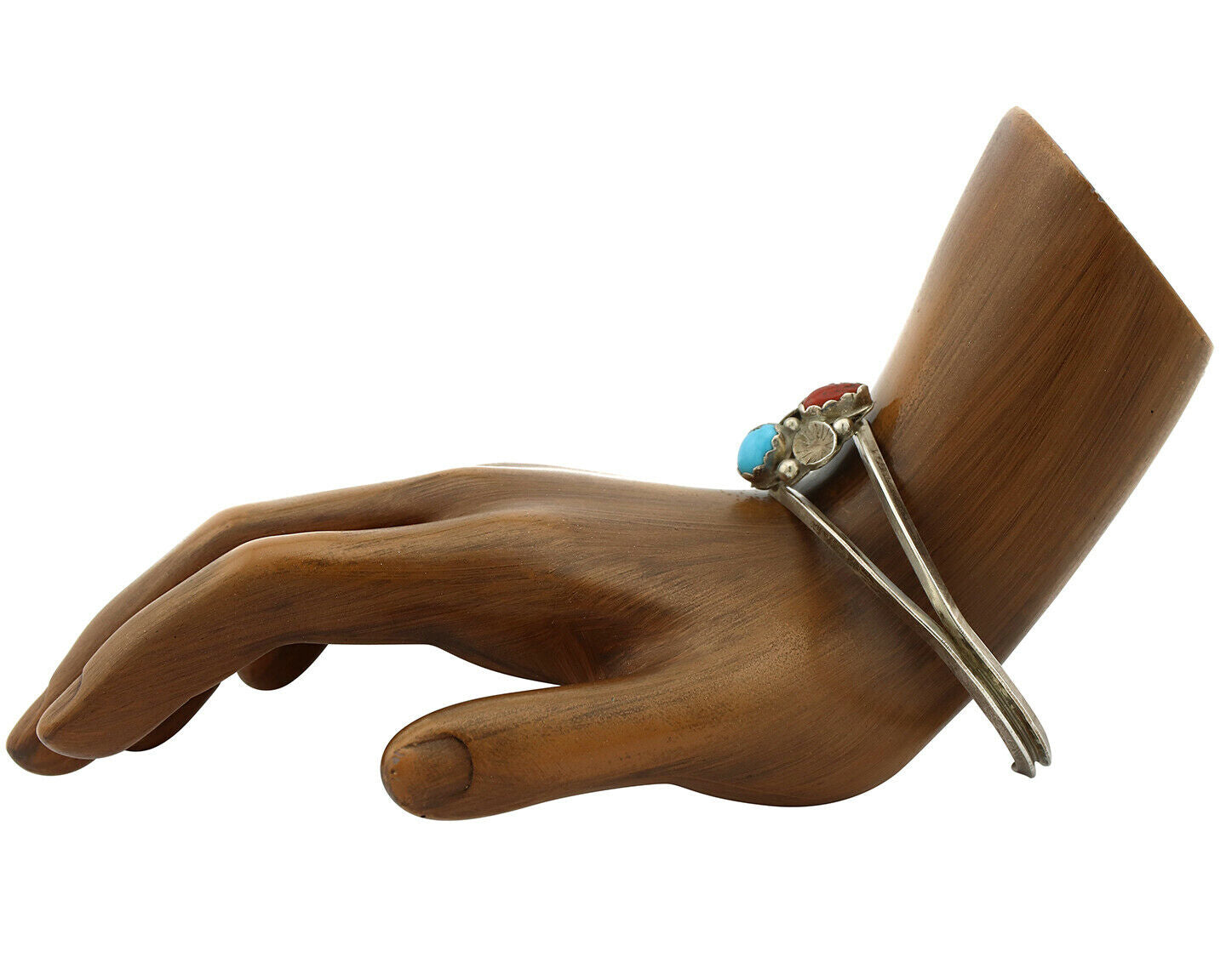 Navajo Bracelet .925 Silver Natural Turquoise & Coral Native American Artist 80s