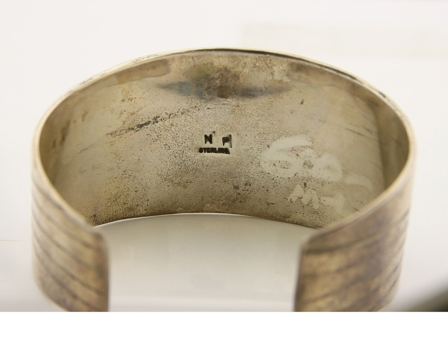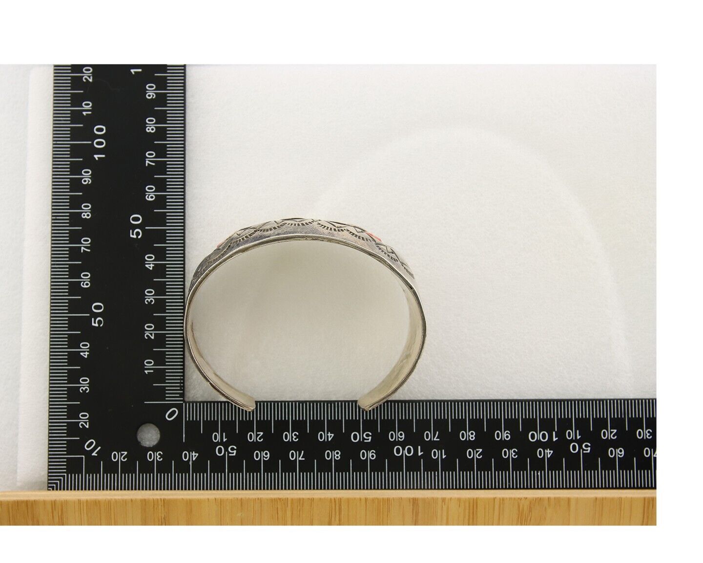 Navajo Bracelet .925 Silver Red Coral Cuff Artist Signed NP C.80's