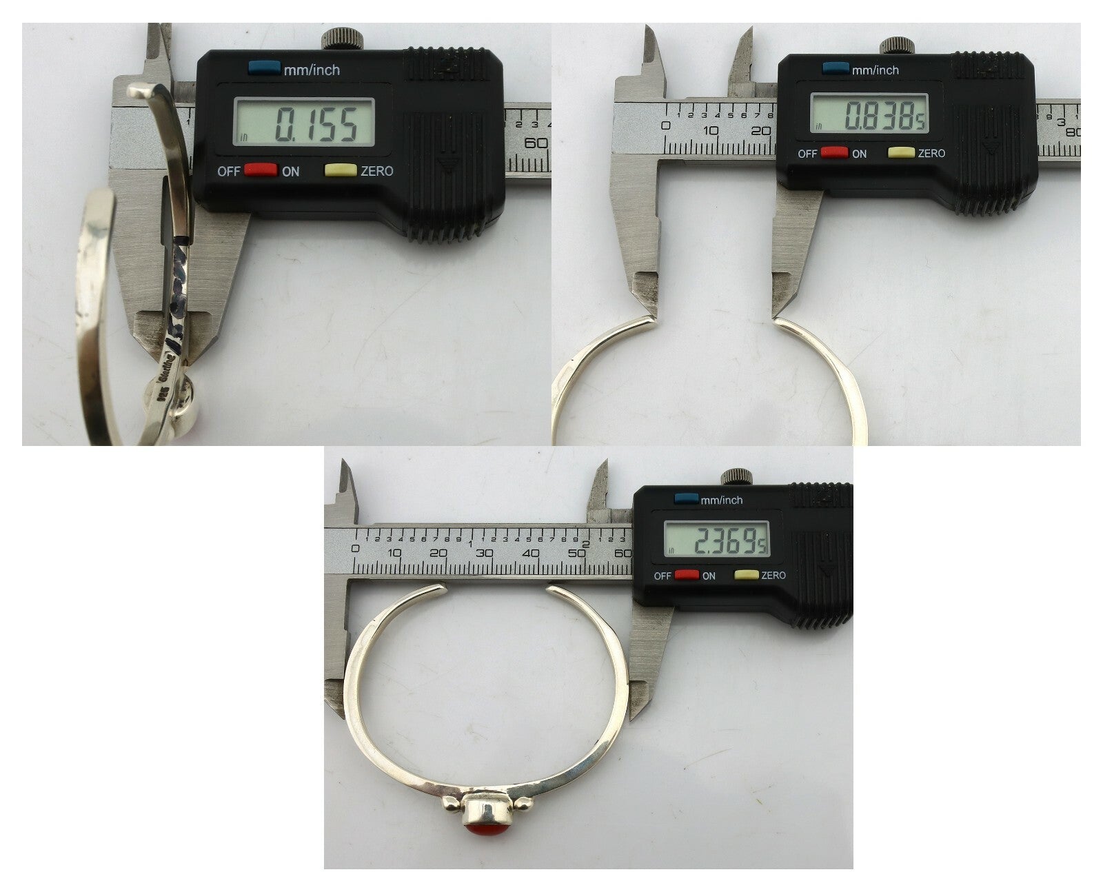 Navajo Bracelet .925 Silver Red Mediterranean Coral Native American Artist C90s