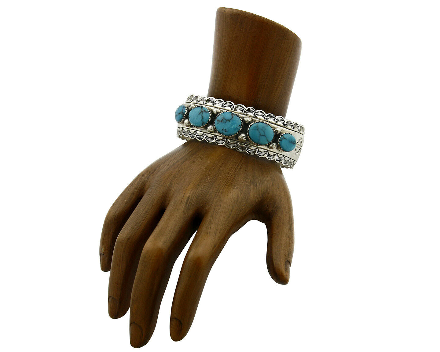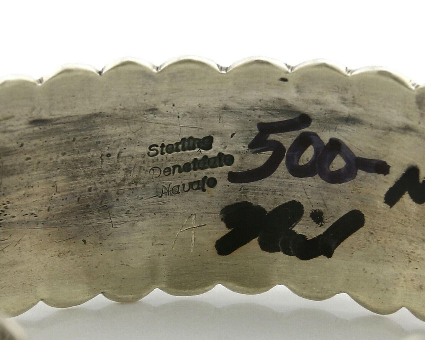 Navajo Bracelet .925 Silver Spiderweb Turquoise Artist Denetdale Circa 80's