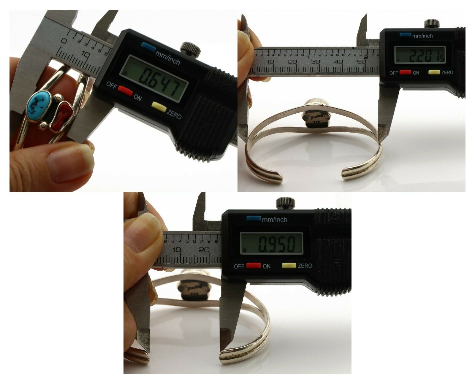 Navajo Bracelet .925 Silver Turquoise & Coral Artist Native American C.1980's
