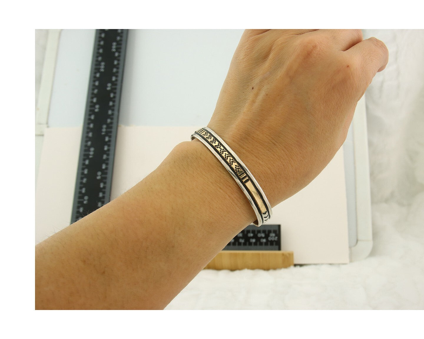 Navajo Bracelet Gold & 925 Silver Handmade 8.3 mm Wide Signed Thomas Singer C80s