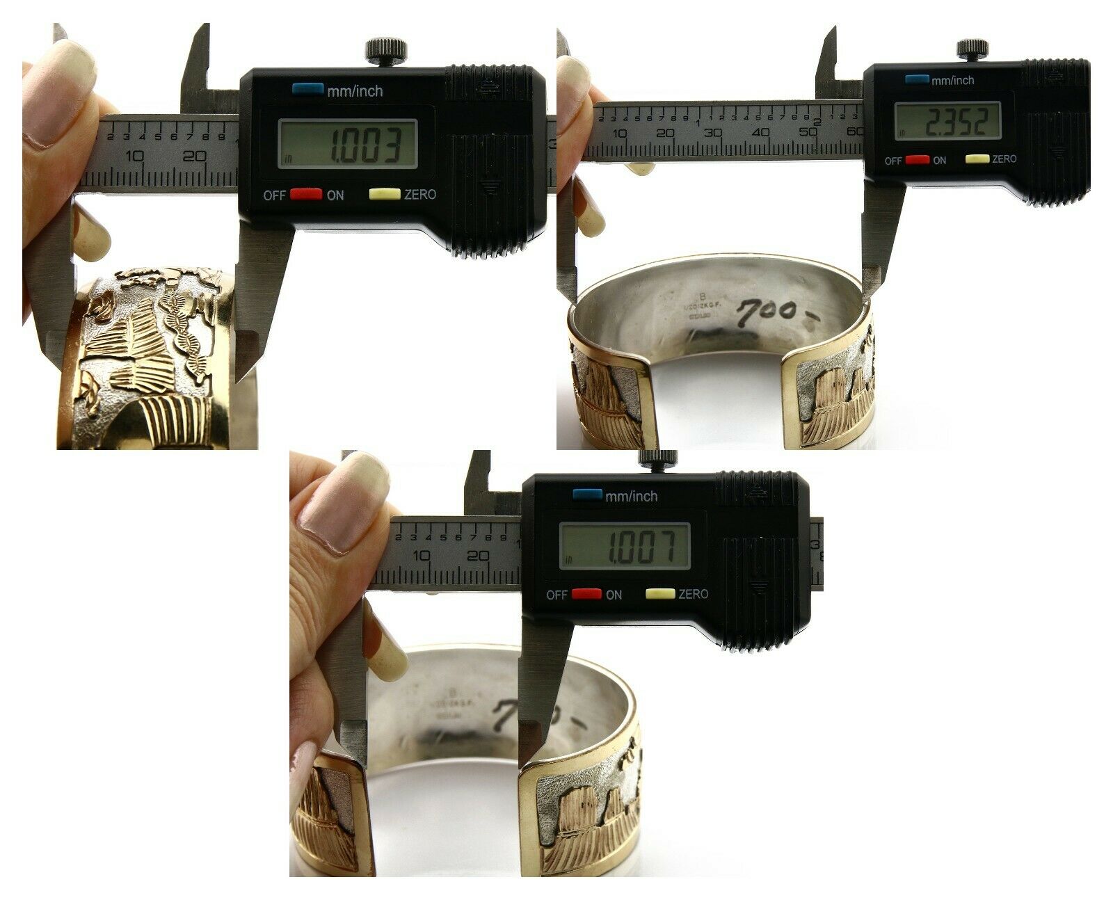 Navajo Bracelet Pictograph Landscape SOLID .925 Silver & 12K GF Artist Signed B
