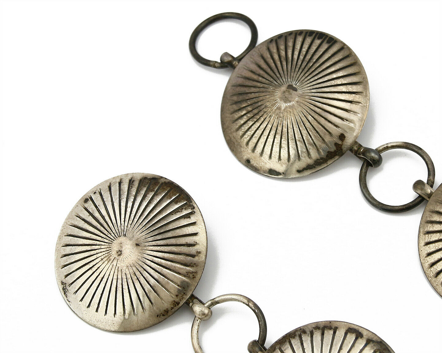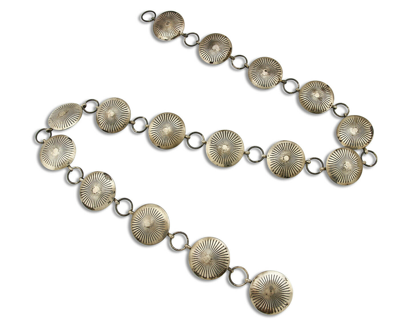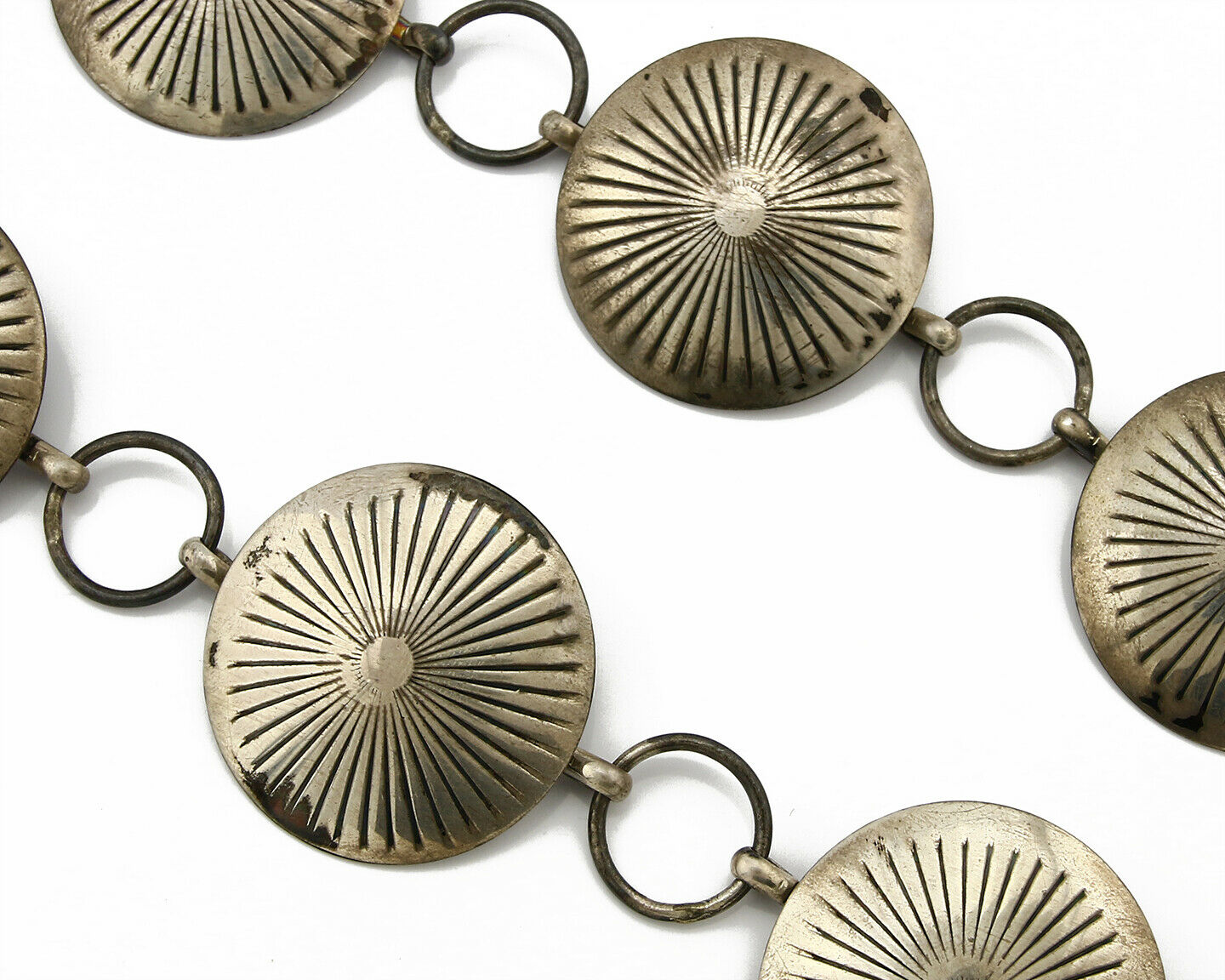 Navajo C.1980's Handmade .925 Silver Hand Stamped Concho Belt 36in Long