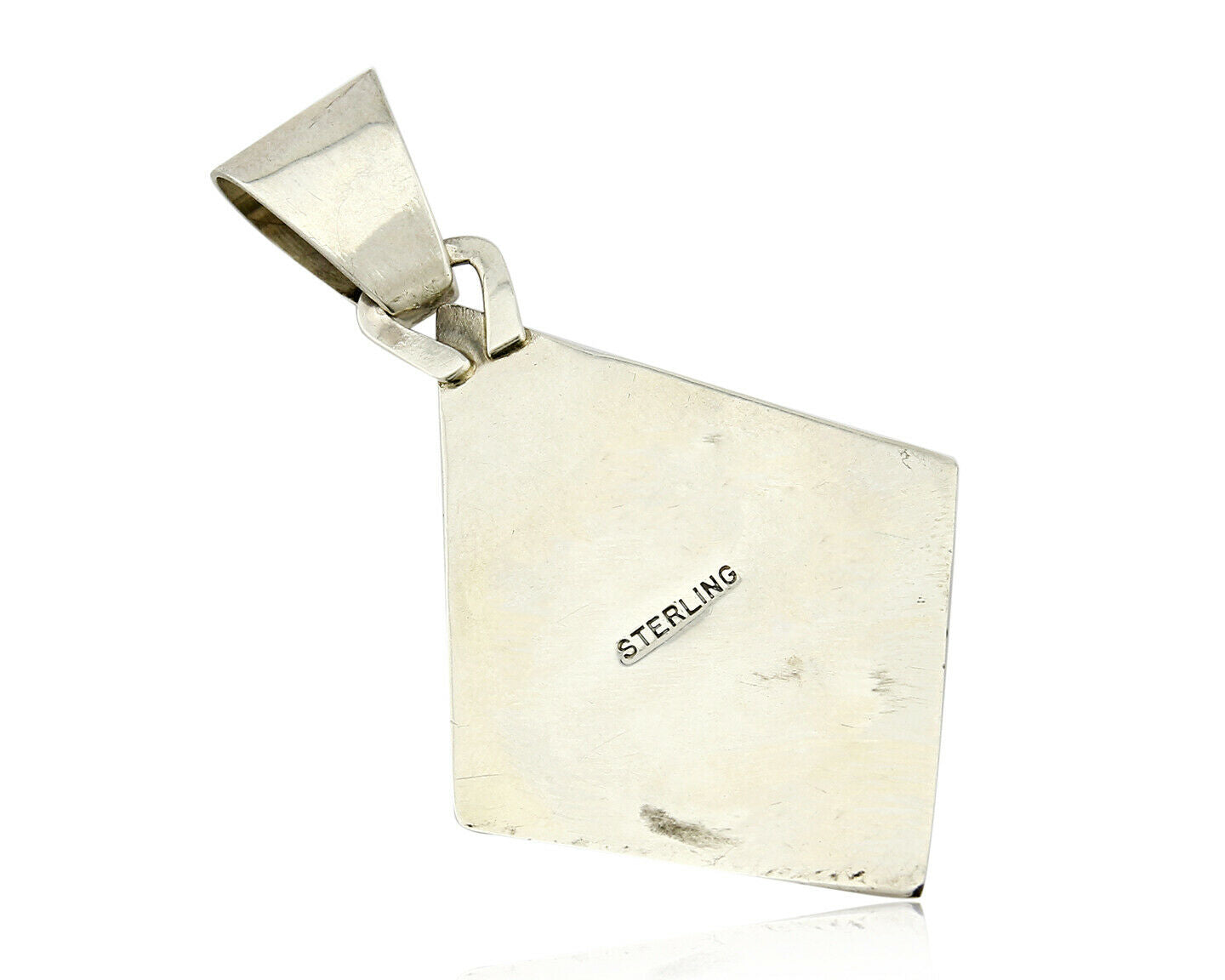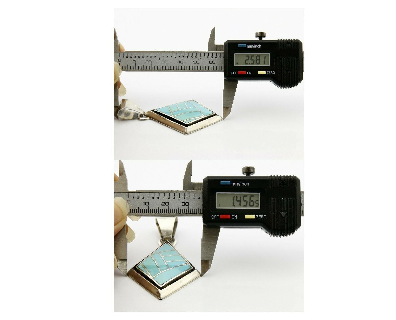 Navajo C. 1980's Inlaid Raised Shadowbox .925 Silver Turquoise Pendant