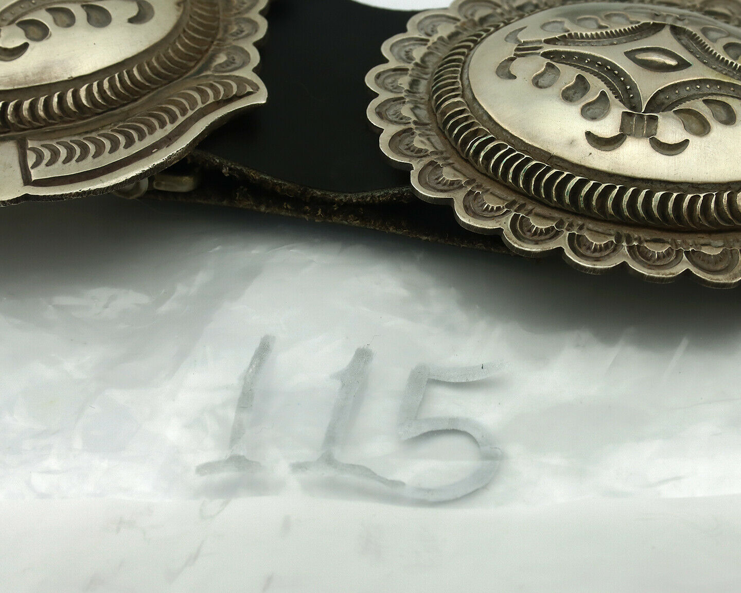 Navajo Concho Belt .925 Silver Hand Stamped Artist Harris Joe C.80's