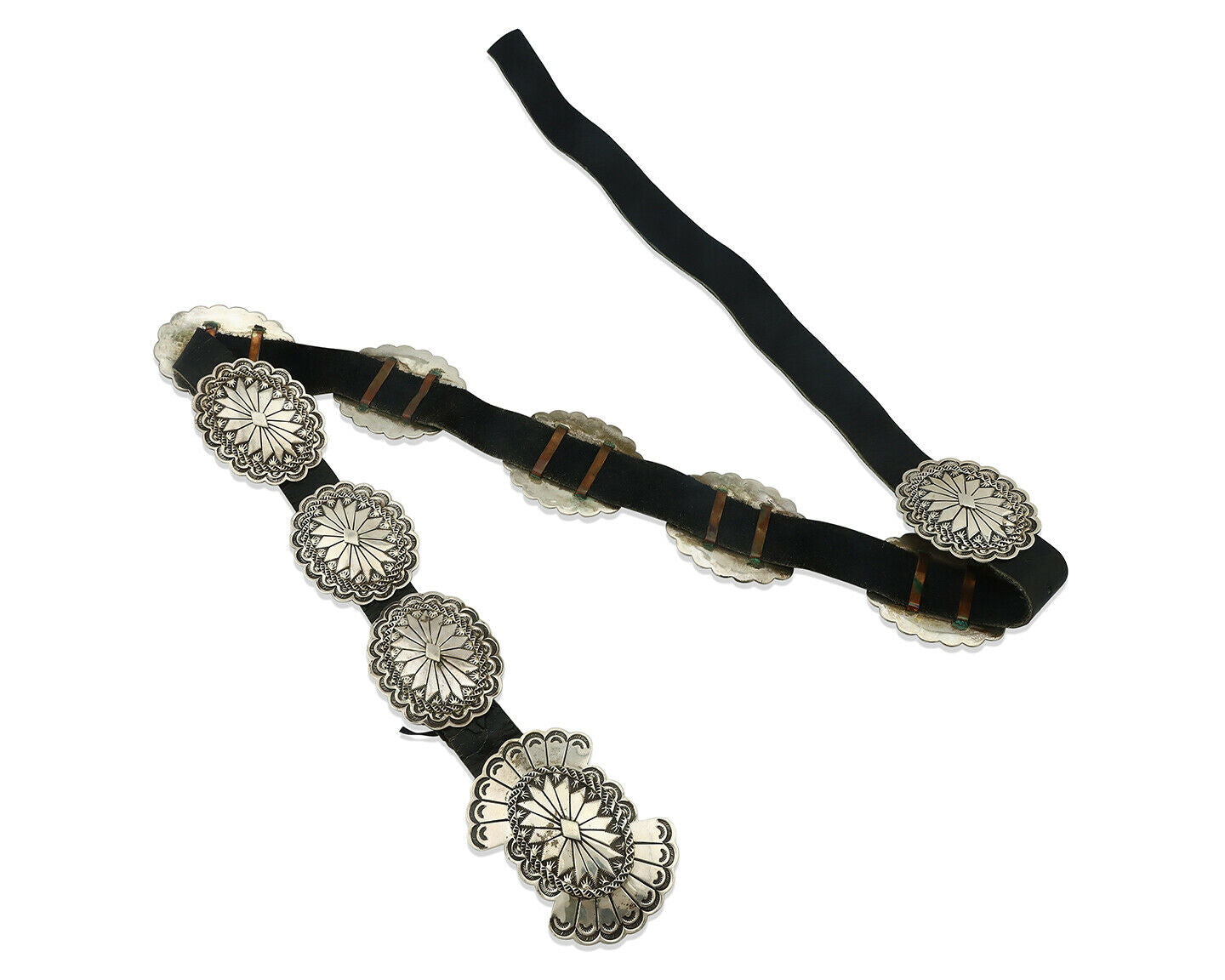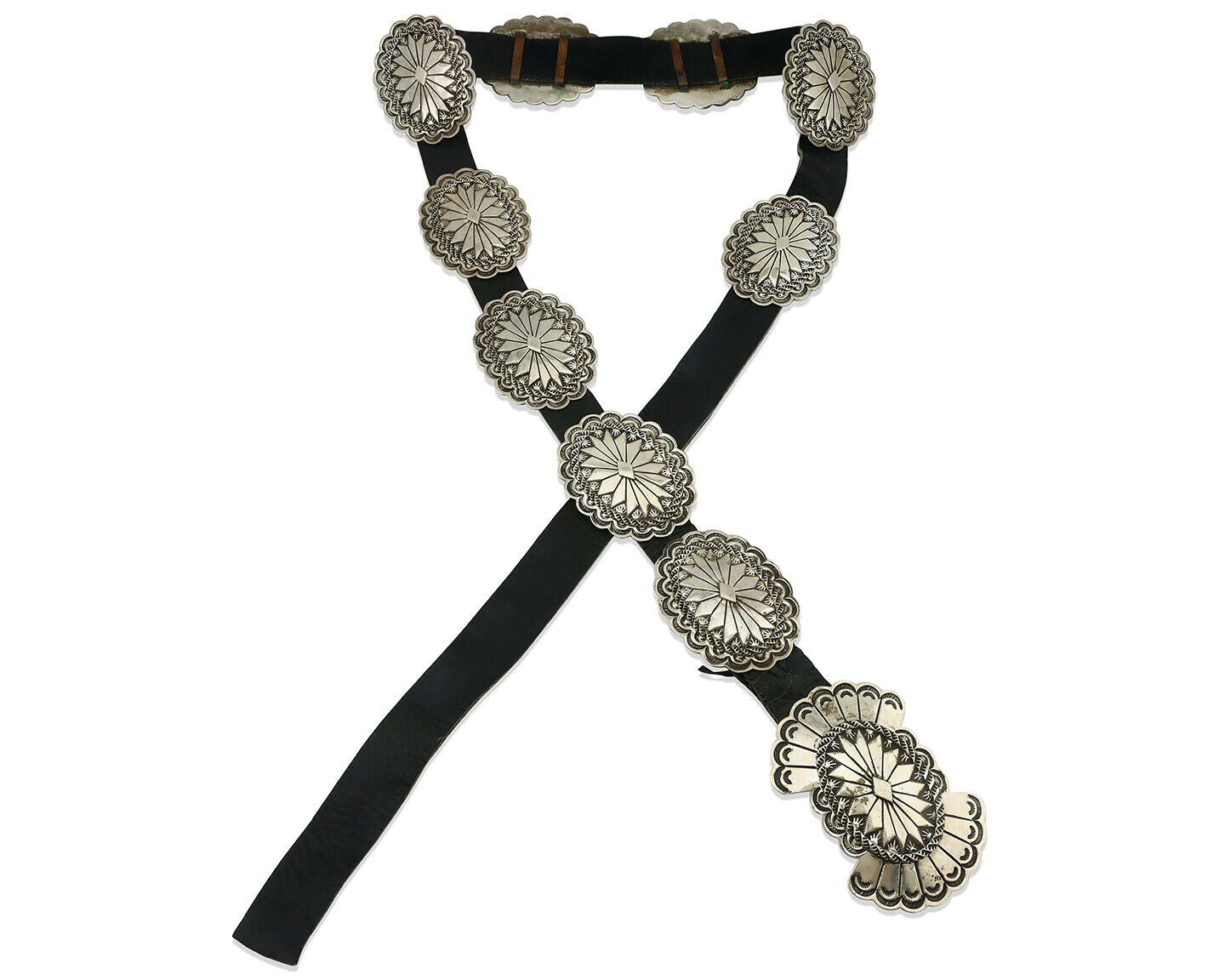 Navajo Concho Belt .925 Silver Hand Stamped Artist Michael Rogers C.80's